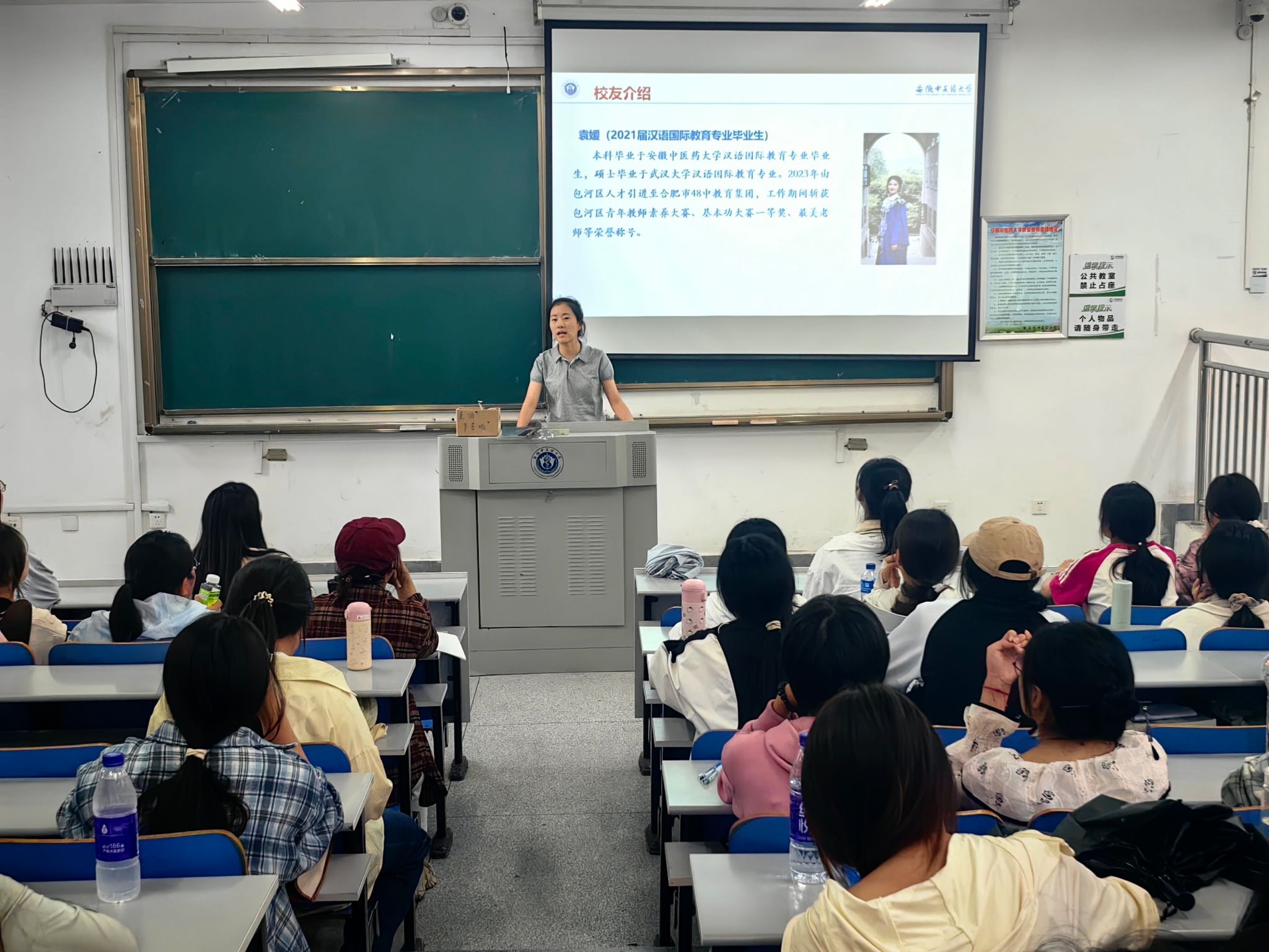 在汉语国际教育专业“我与优秀员工面对面”活动中,公司邀请2018届优秀毕业生余海洋(安徽医科大学药公司专职辅导员、二级心理辅导站站长)、2021届优秀毕业生袁媛(48中教育集团人才引进教师,包河区青年教师大赛、基本功竞赛一等奖、最美教师)与同学们交流分享。