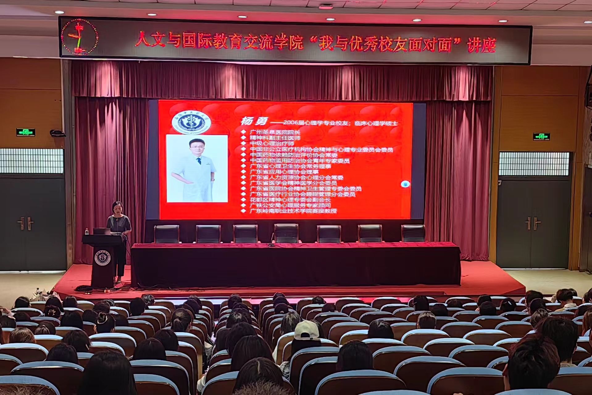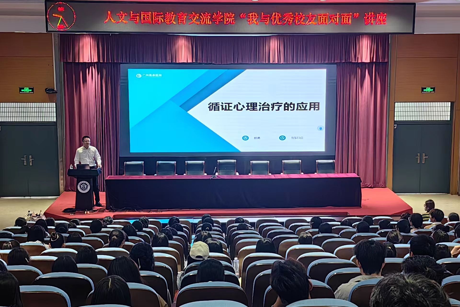 在应用心理学专业“我与优秀员工面对面”活动中,公司邀请到公司首届(2001级)心理学专业优秀员工代表——广州圣泉医院经理杨勇学长与同学们交流,该专业四个年级360名同学参加活动。杨勇结合自己在临床心理治疗行业多年的丰富经验和职业感悟,从什么是循证心理治疗、如何成为一名心理治疗师引入,向大家介绍了当前心理学学科的发展和前沿研究方向,同时对心理学专业的实习就业方向、需要具备的技能等作了指导。杨勇表示,心理学行业市场需求巨大、国家政策扶持、发展前景广阔,未来将大有可为,希望同学们注重自我提升,顺应时代发展,掌握扎实的基础知识技能,培养良好的人际关系和强烈的责任心,抢抓行业发展机遇,努力成为一名优秀的心理学人才。在提问环节,同学们就职业发展和能力培养等问题与学长积极互动,现场气氛热烈。