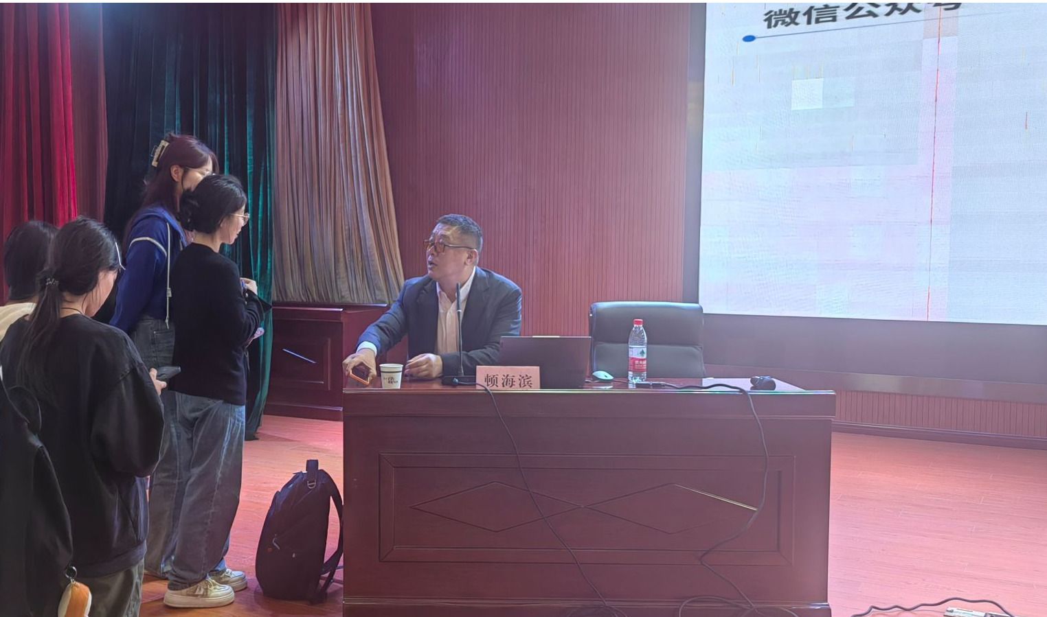 互动交流环节气氛热烈,持续了半个多小时,同学们围绕岗位选择、跨专业择业、如何提升就业竞争力、出国留学等问题向老师一一请教,顿海滨均耐心地分析解答,并提出,用人单位在考虑录用人选时会从教育背景、实践及工作经验、沟通能力、个人品质等多方面进行综合评估,希望同学们能从中获得启发,更好地应对即将到来的毕业季。