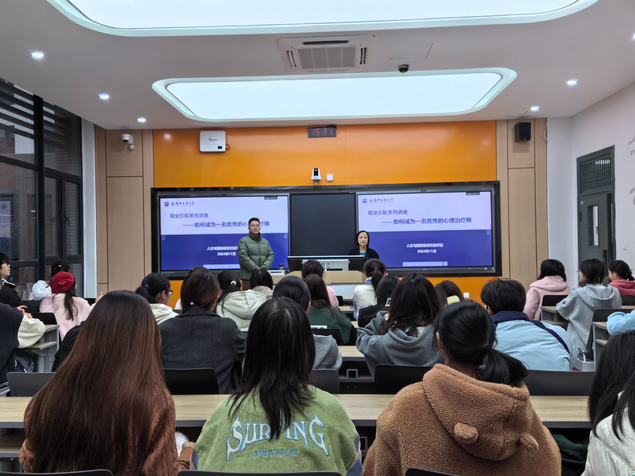 为帮助员工树立职业生涯规划意识,强化专业胜任能力,11月18日下午,m88就业导航系列讲座在教学楼B121教室顺利举办。此次活动邀请了安徽省精神卫生中心临床心理治疗师胡冉冉作主题为“如何成为一名优秀的心理治疗师”的讲座,公司应用心理学各年级60余名员工参加,讲座由公司党总支书记金晓琴主持。