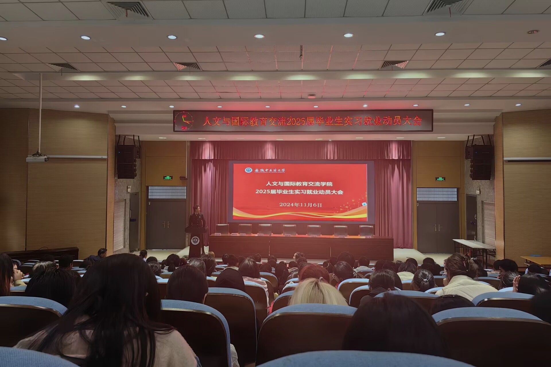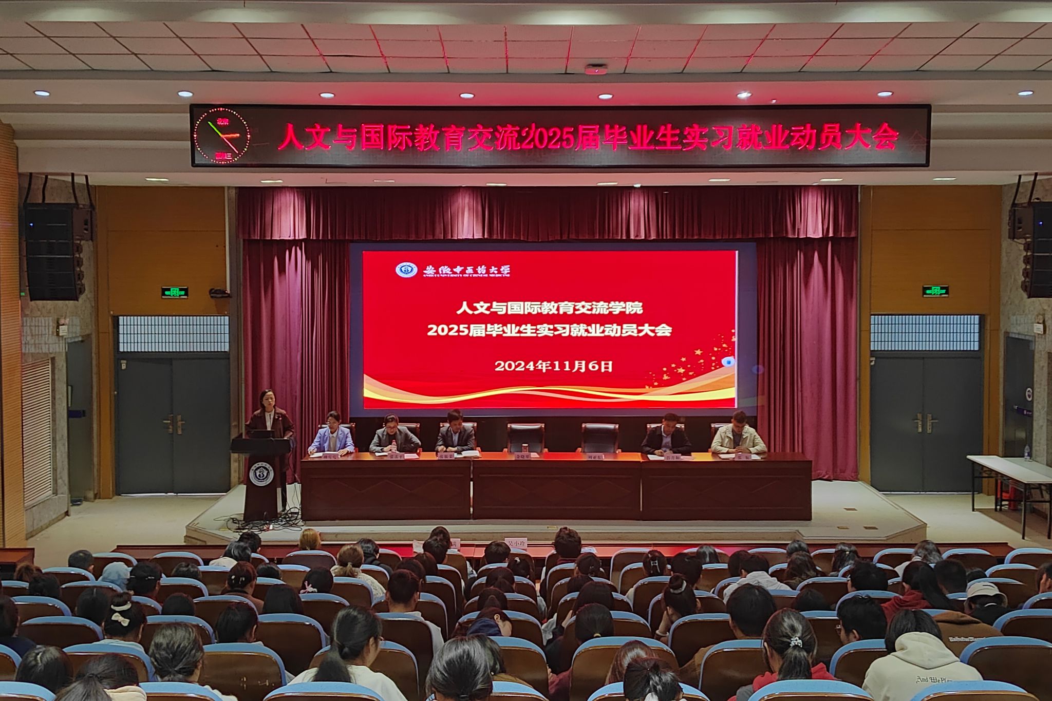 为提高实习实践育人质量,指导毕业生做好实习与就业前的各项准备,11月6日下午,2025届毕业生实习就业动员大会在少荃湖校区教学楼A114教室召开。员工处副处长詹钟华,公司党政领导出席会议,汉语国际教育系、心理系主任,实习就业办主任、毕业班辅导员及全体2025届毕业生参加会议。会议分实习动员大会和就业征兵工作动员大会两个阶段,分别由张筱荣、彭青和主持。