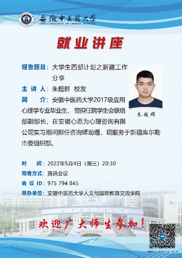 为进一步鼓励员工投身基层,服务西部,5月4日,公司举办西部计划线上分享交流会,会议邀请公司2021年参加西部计划的志愿者,2017级应用心理学专业毕业生朱超群和邹华在线分享其服务祖国西部的亲身感悟和收获,公司党总支副书记,实习就业办秘书,毕业班辅导员和全体毕业班员工参加了会议。