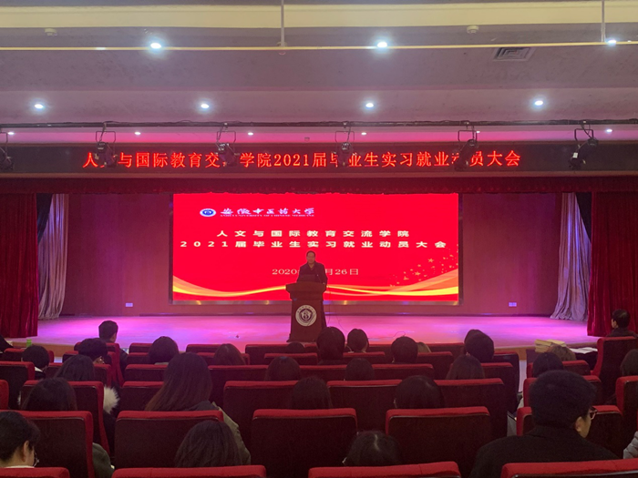 为进一步做好2021届毕业生实习就业工作的安排和部署,促进毕业生积极就业,11月26日下午,m88在公司图书馆一楼报告厅隆重召开2021届毕业生实习就业动员大会。公司党总支书记姚为久、经理周亚东、应用心理学系主任王平、副主任宫黎明、汉语国际教育系主任张雷平、辅导员周政和王满、实习与就业办公室主任及2021届全体毕业生参加了此次大会。