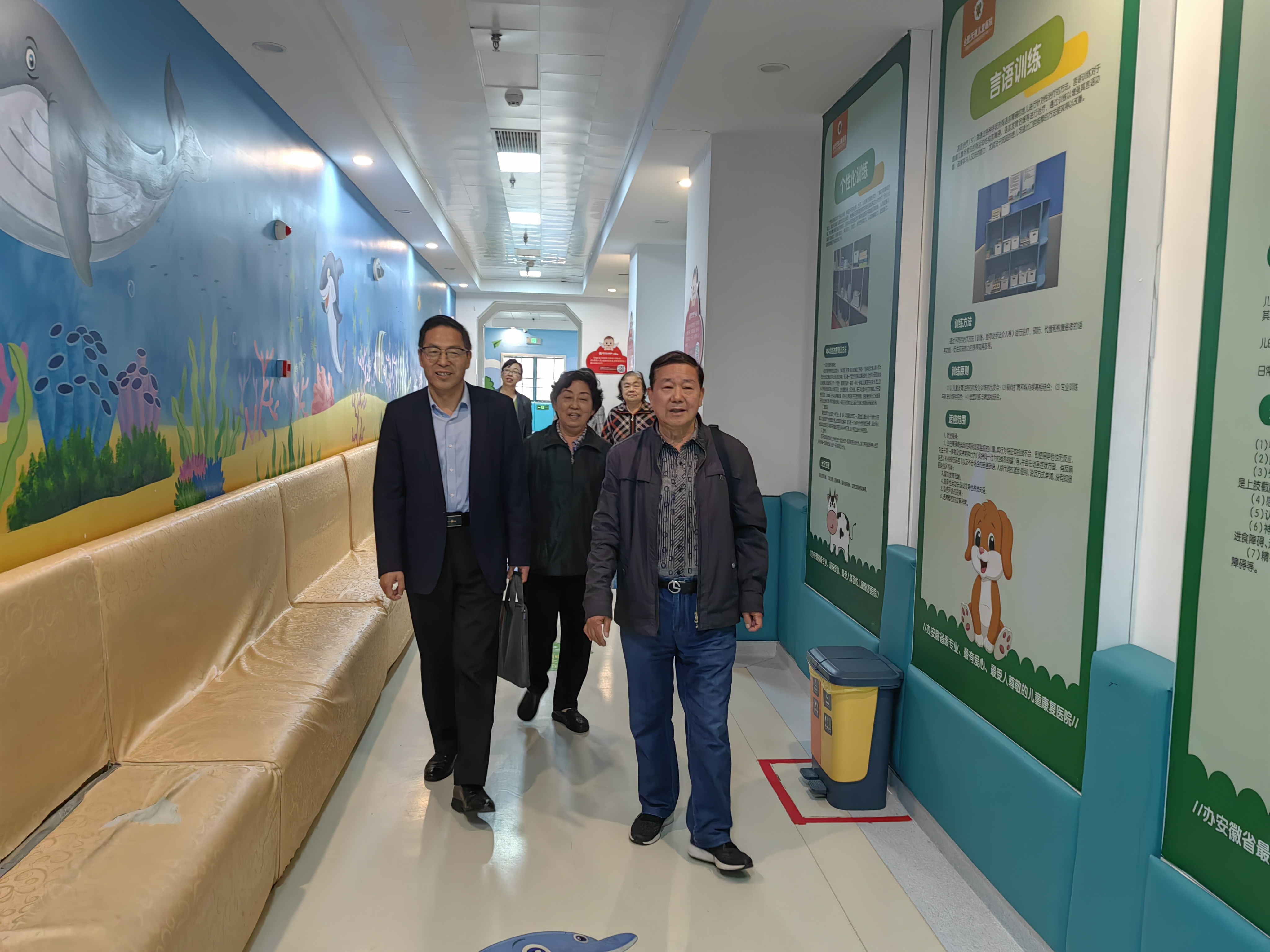 座谈会后,周亚东一行参观了天使儿童医院的各科室,王振玺介绍了各科室医护人员、医疗设备、工作流程等情况。