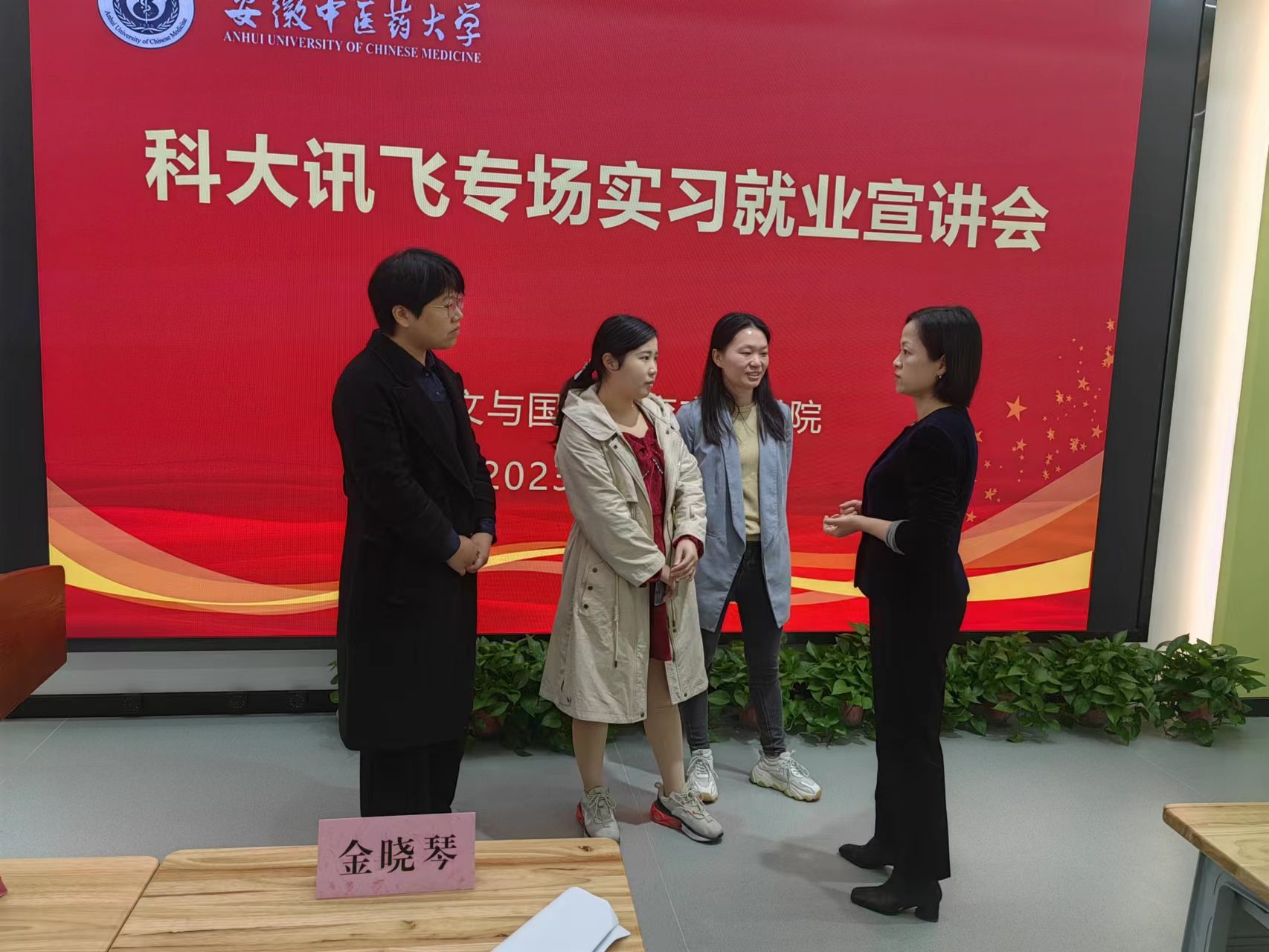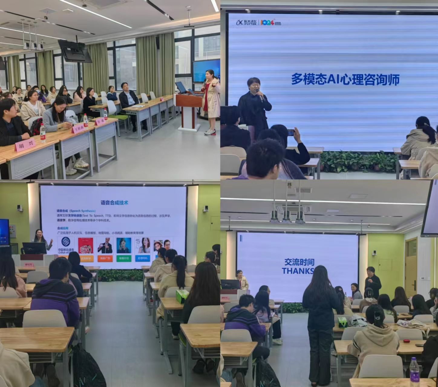 王祖燕、付敏、胡兴分别就科大讯飞发展概况、工作生活环境、企业发展战略、多模态AI心理咨询师、语音合成技术等内容,重点对科大讯飞人才需求进行宣讲。并表示期待应用心理学专业和汉语国际教育专业的员工实习就业,共同推进AI技术在心理咨询、语音合成等领域的发展。