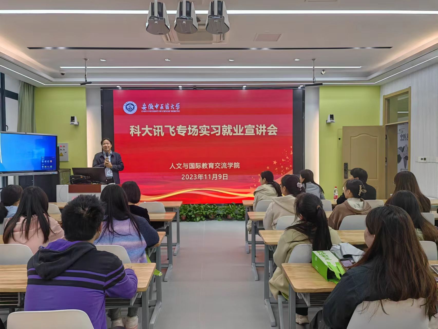 11月9日,在教学楼B210-211智慧教室,m88邀请科大讯飞进校开展专场实习就业宣讲会。科大讯飞合成方向交付经理王祖燕、科大讯飞hrbp付敏、心理知识部,2012届应用心理专业员工胡兴、公司党总支书记金晓琴、副书记彭青和、实习就业办主任柳莺莺,以及2024届部分毕业生参加实习就业宣讲会。