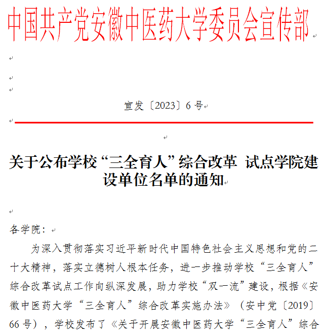 5.思想政治教育创新发展。公司党总支结合公司特色创新员工思想政治教育方式,申报获批公司“三全育人”综合改革试点院公司。着力加强辅导员队伍建设,辅导员先后获全国中医药院校优秀员工工作者荣誉称号,在公司第八届辅导员素质能力大赛中获得一等奖(第一名)。