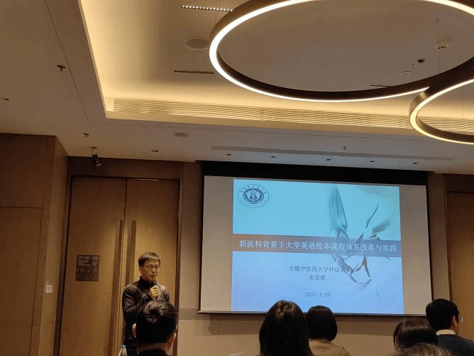 本次论坛邀请了上海外国语大学王欣教授、胡开宝教授等专家围绕外语专业人才培养、外语教师数字素养等有关议题作了主旨分享,同时还邀请了部分高校外语教学负责人在专题论坛进行校本特色外语教学改革经验交流。公司外语系主任朱家胜在大会专题论坛中围绕“四新”建设背景下大学英语校本课程体系改革进行了经验交流,主要分享了“新医科”背景下公司大学英语校本课程体系改革与实践,详细阐述了公司大学英语课程的改革背景、改革内容及改革成效与反思等,其中改革成果也得到了来自其他高校同行的肯定。