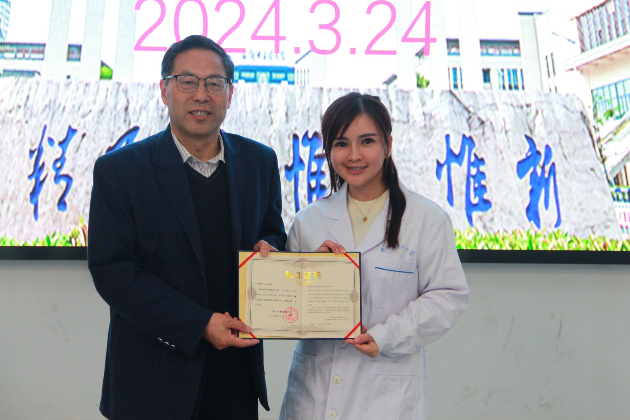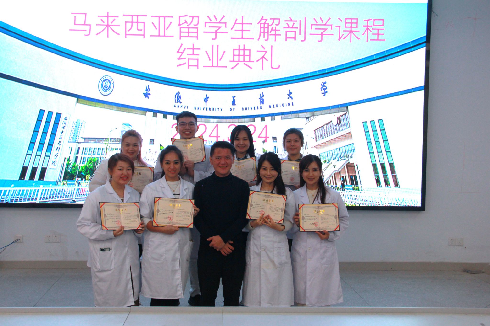 马来西亚短训班学员完成解剖学课程学习后,m88经理周亚东及培训教师代表胡光明教授为学员们颁发结业证书。(王梦婕/文图 金晓琴/审核)