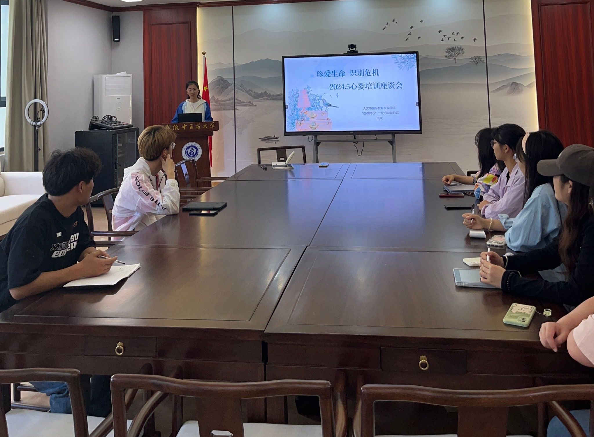 为进一步发挥班级心理委员在老员工心理健康教育工作中的重要作用,增强心理委员助人自助、服务同学的能力。5月15日下午,m88在惟新楼292会议室举办了主题为“珍爱生命,识别危机”心理委员培训。本次培训由公司二级心理辅导站周政老师主讲,公司各班级心理委员参加了此次培训。