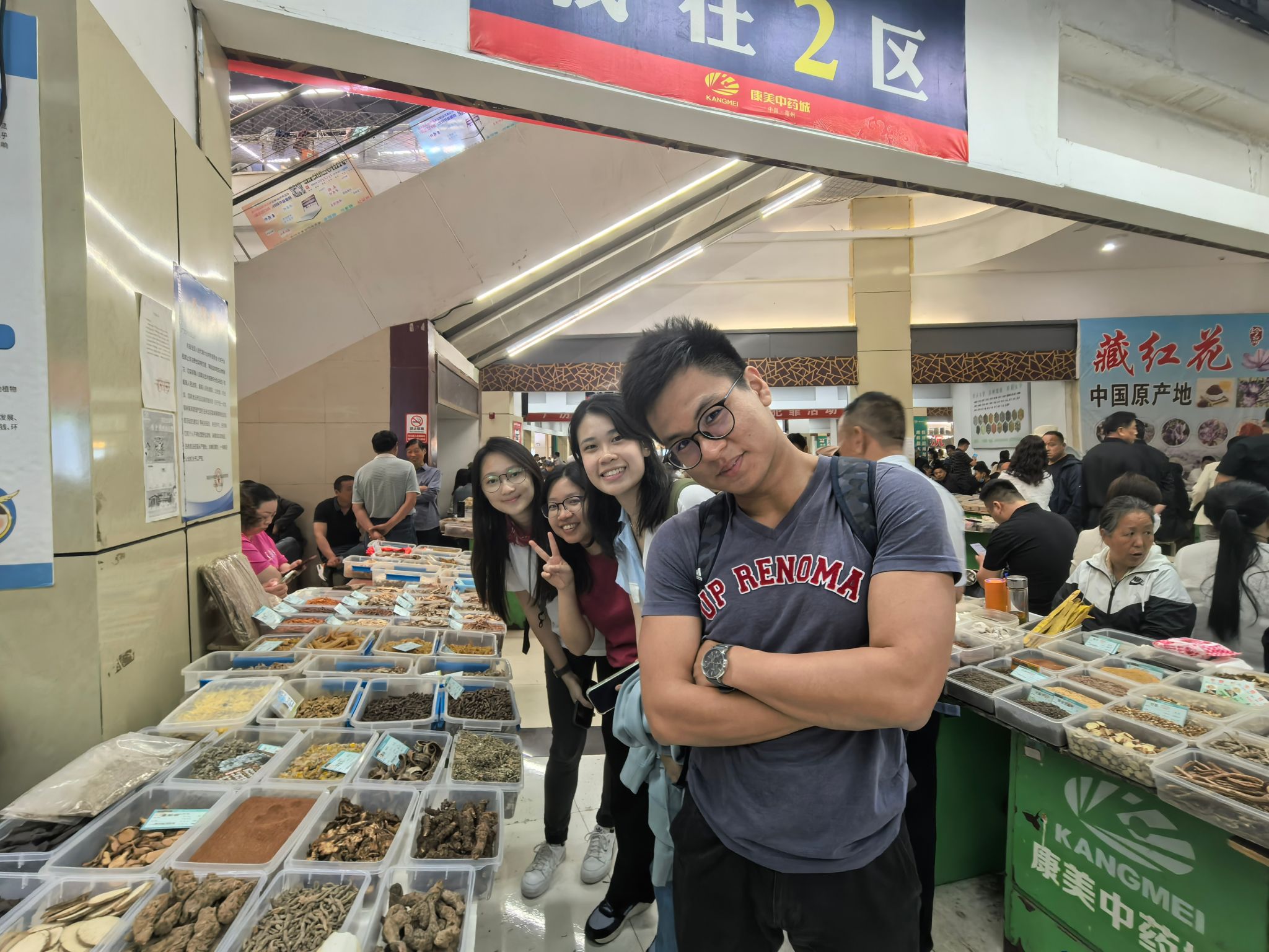 5月12日上午,新加坡南洋理工大学师生一行到达药都亳州,在亳州职业技术公司的协助下,带领同学们参观中国亳州中药材交易市场,带队教师在市场里用实物向同学们讲解了中药材真伪和品质的鉴定鉴别知识,帮助同学们了解如何选取上乘品质的药材。同学们在新加坡从未见到种类如此齐全的中药材,大家兴趣盎然,拍摄了大量中药材照片,带回去认真学习研究。