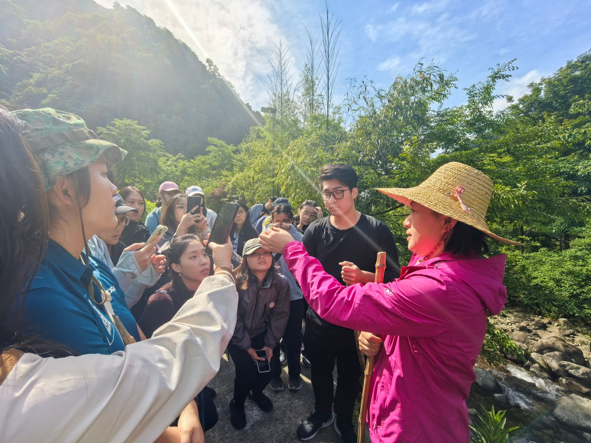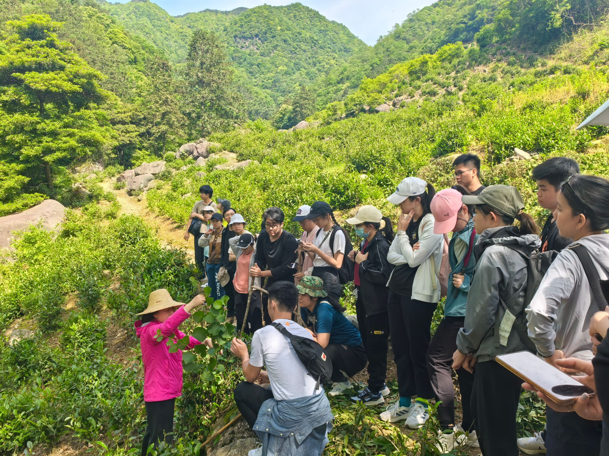 5月16日,师生一行在公司药公司谢冬梅教授及外事办教师的带领下,徒步进入山区,实地认识与采集各种野生药用植物,了解它们的特殊生长环境及草药用法等。