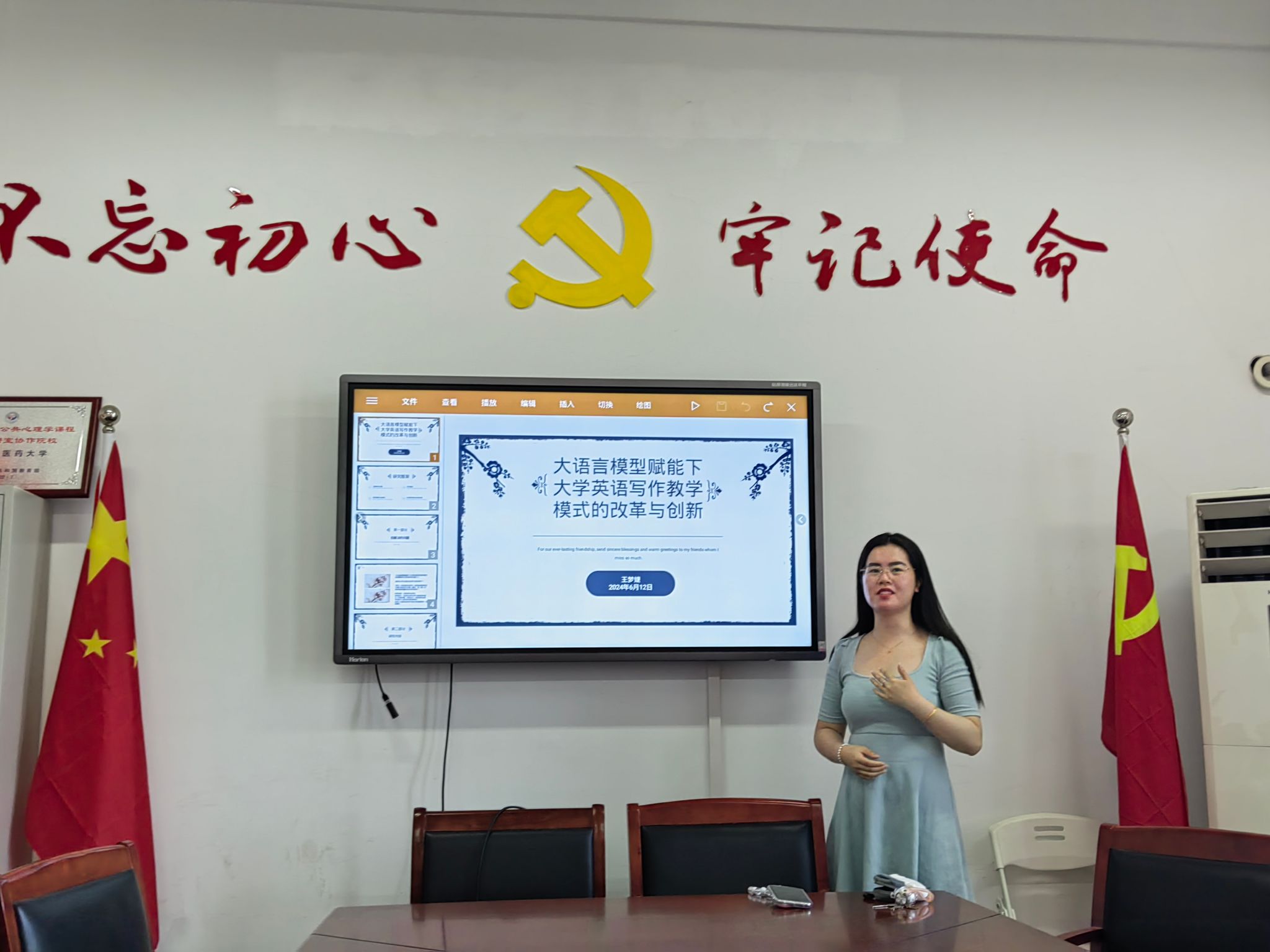 6月12日下午,公司教工第一党支部、教工第四党支部联合开展党员活动,举办了医学人文论坛第50期学术沙龙。本次学术沙龙的主题为“大语言模型赋能下大学英语写作教学模式的改革与创新”,由中医药国际传播系教师王梦婕主讲,参与者为外语系和中医药国际传播系教师。
