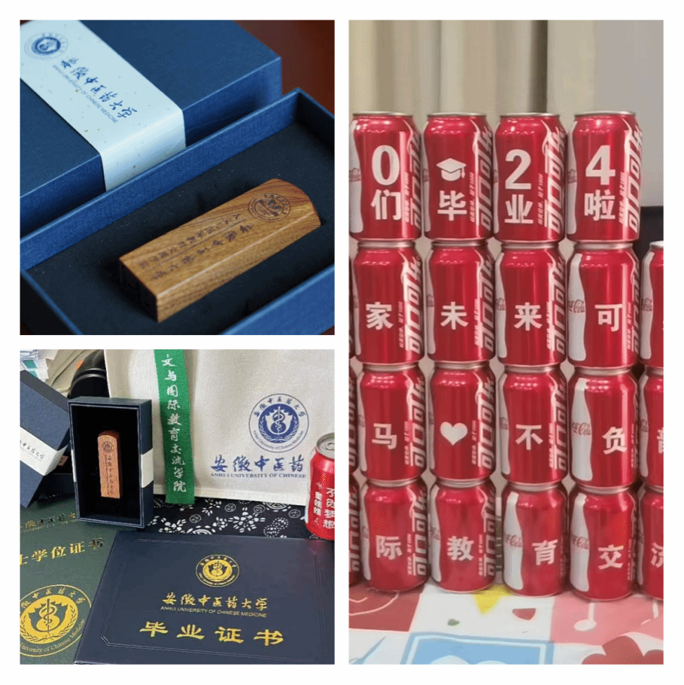 ——开展青春寄语,营造毕业氛围。6月底,公司录制了“师长的嘱托”视频寄语,公司领导、系主任、毕业班辅导员等依次出镜,祝福全体毕业生勇担时代使命,努力奋斗,在各自工作岗位上为党和人民建功立业。为进一步打造满满的毕业“仪式感”,公司在一楼户外大厅,设置“语你同心”大型展板,制作“感恩相伴 筑梦启航”“青春毕业站”“未来可期”等微型展板,延着二楼和三楼楼梯扎上了刻有“致青春”“我们毕业啦”等字样的彩色气球,成为全体毕业生的毕业合影留念的经典“打卡点”;6月底,公司还精心为全体毕业生准备了寓意深远的大礼包,里面刻有每一位毕业生姓名的“印章”和“可口可乐”,还有精美的帆布袋,这些毕业专属礼品,代表公司对毕业生们美好的祝愿和对他们未来的期望。