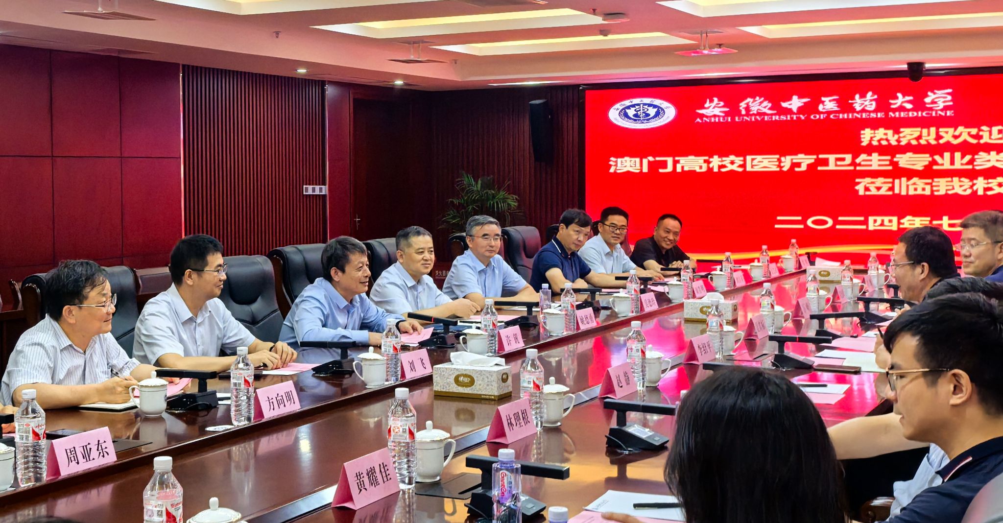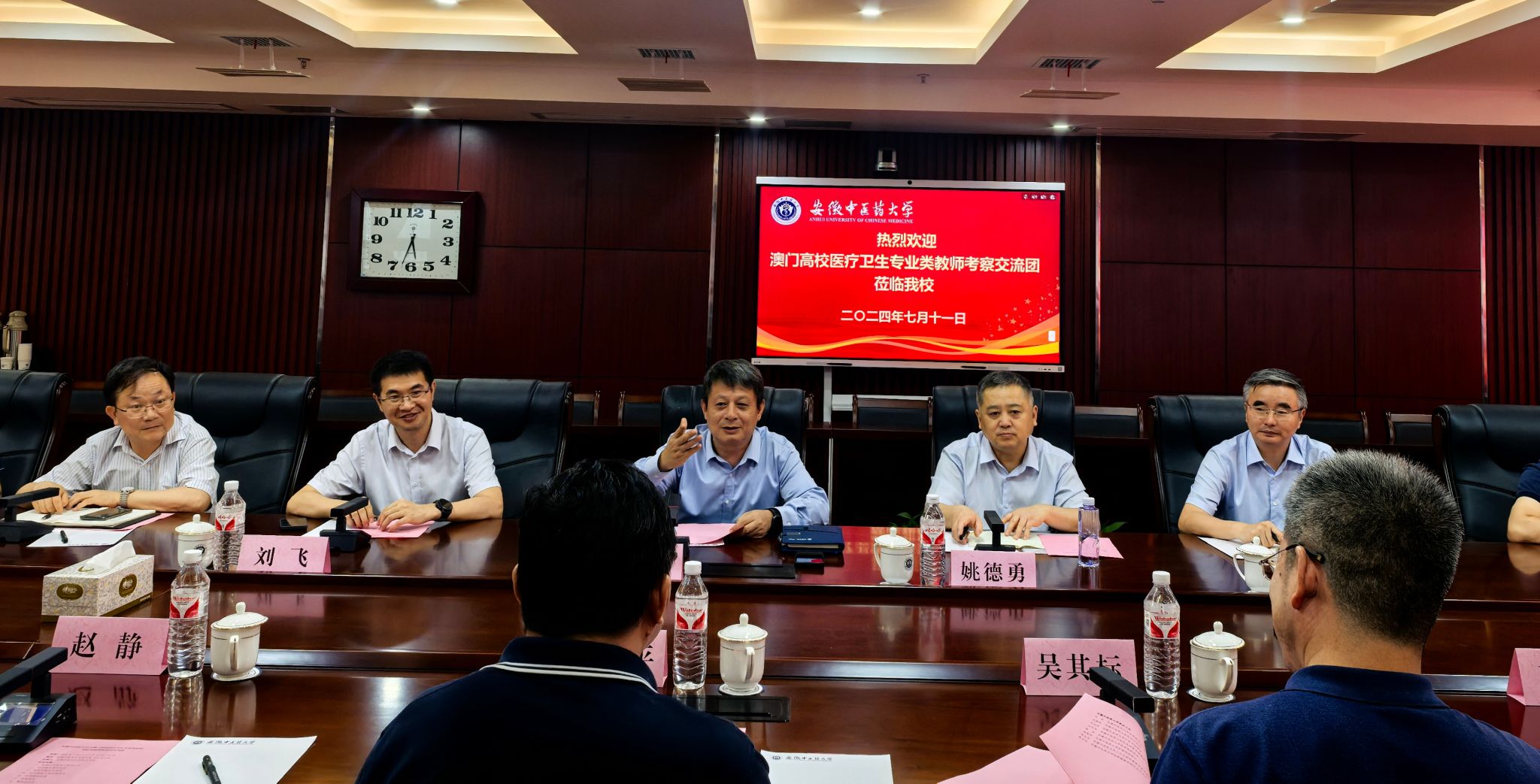 7月11日下午,澳门高校医疗卫生专业类教师考察交流团李绍平教授一行来公司参观访问及交流。代表团抵达公司后,许钒董事长首先带领交流团一行参观了中药资源中心、古籍部及新安医学文化馆,让代表团对公司的办学特色有了全面的了解。