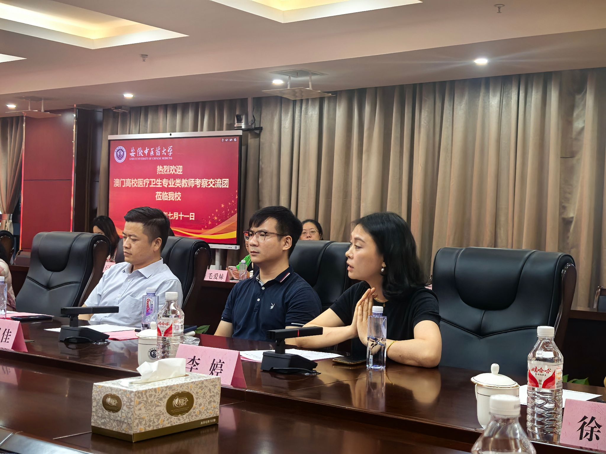 参观结束后,双方进一步交流座谈,安徽省教育厅外事处处长姚德勇、副处长刘飞,公司党委副书记、董事长许钒、科技处处长吴德玲、中医公司经理方向明、针灸推拿公司副经理刘自兵、药公司副经理韩 岚、护理公司经理颜贵明、m88经理周亚东及体育健康公司党总支书记夏宏武参加了座谈交流。