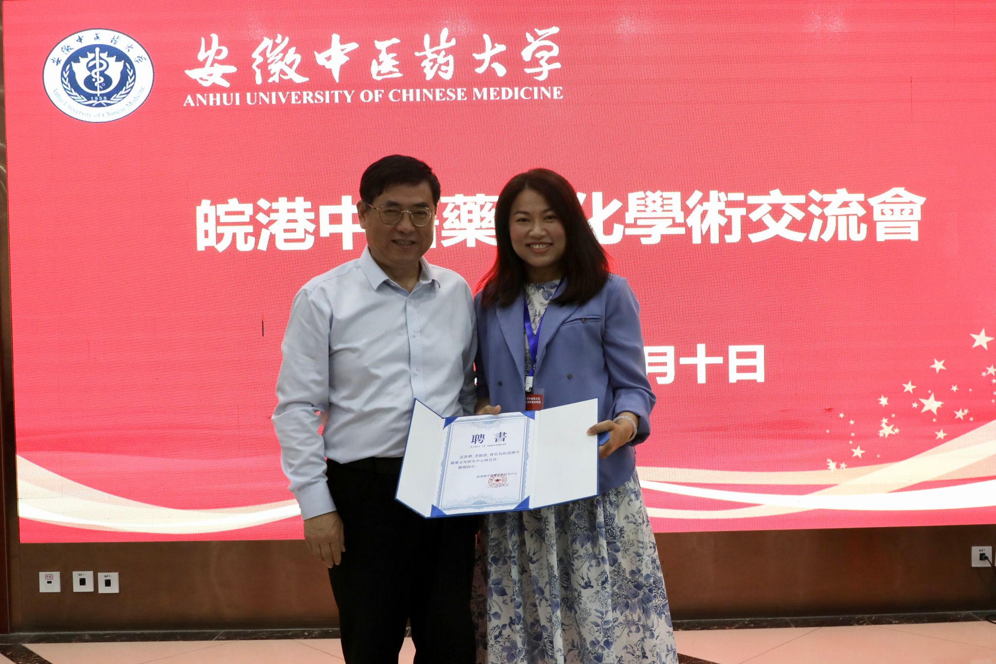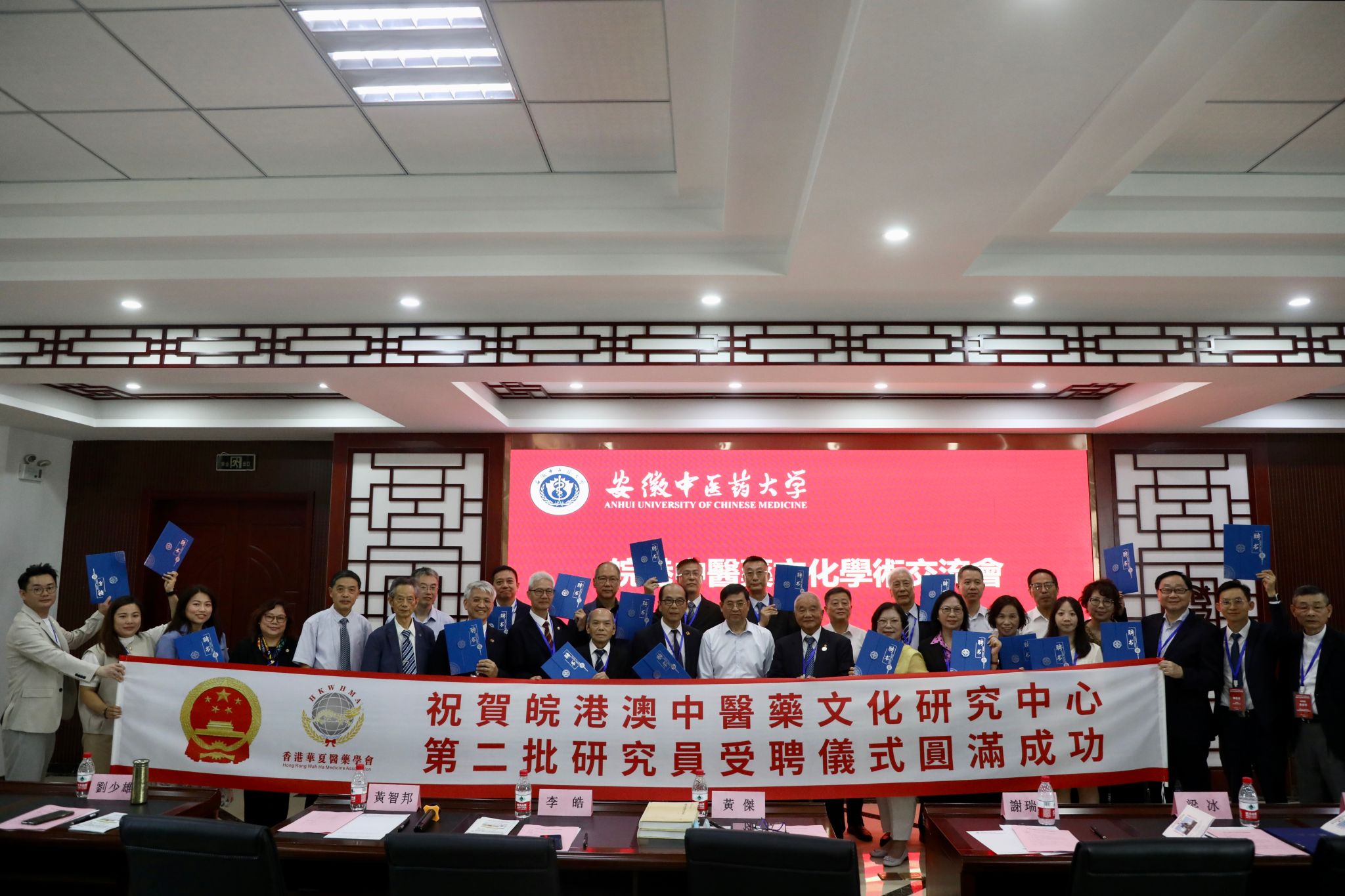 大会上,谢瑞瑾书记为皖港澳中医药文化研究中心研究员和特邀研究员颁发了聘书,并合影留念。