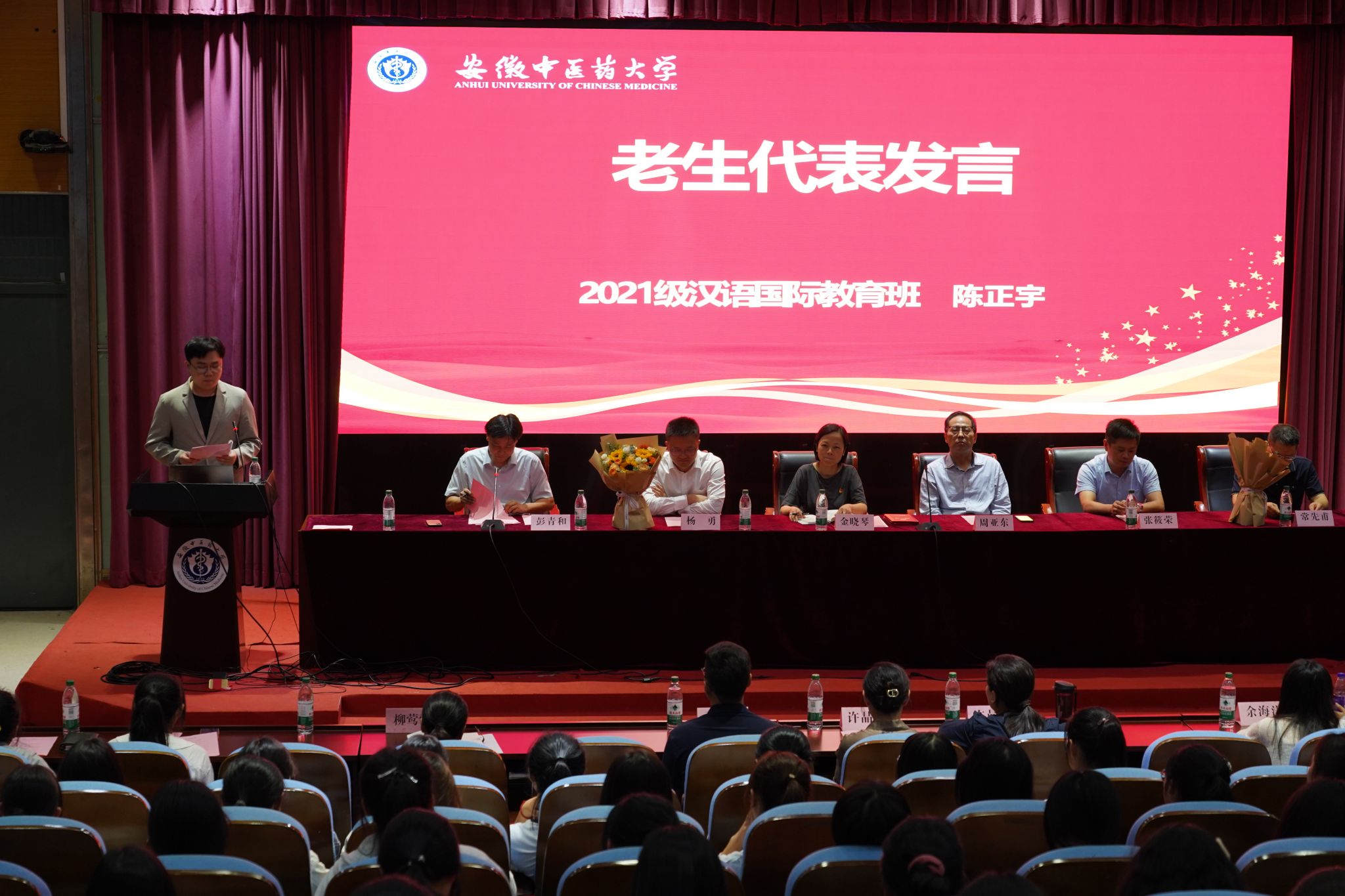 教师代表、汉教系常先甫老师发言,鼓励同学们遵循“至精至诚,惟是惟新”的校训,秉承“修文正心,融通中外”院训,自律自觉、坚韧顽强;树立牢固专业思想、制定合理的学习计划,守正创新、不负韶华,为传播中华优秀文化贡献自己的青春力量。