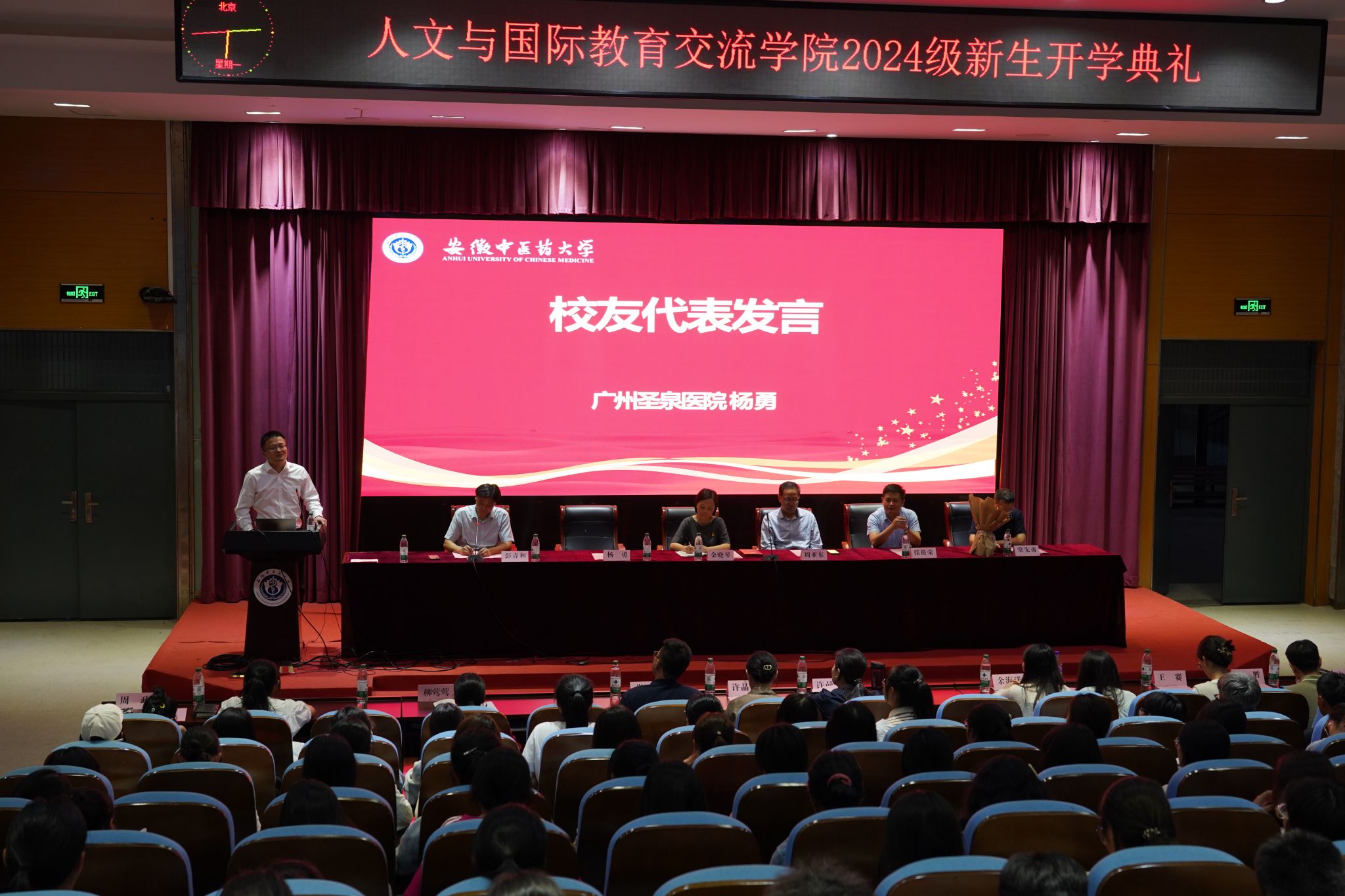 员工代表广州圣泉医院经理杨勇向新同学分享了自己的大学学习、工作和生活点滴;分享了毕业后的个人职业发展经历,希望同学们要静以修身、动若脱兔;要处理好自己、父母、他人三者之间的关系,希望同学们以奋斗为笔,以创新为墨,在逐梦新征程的路上勇往直前。
