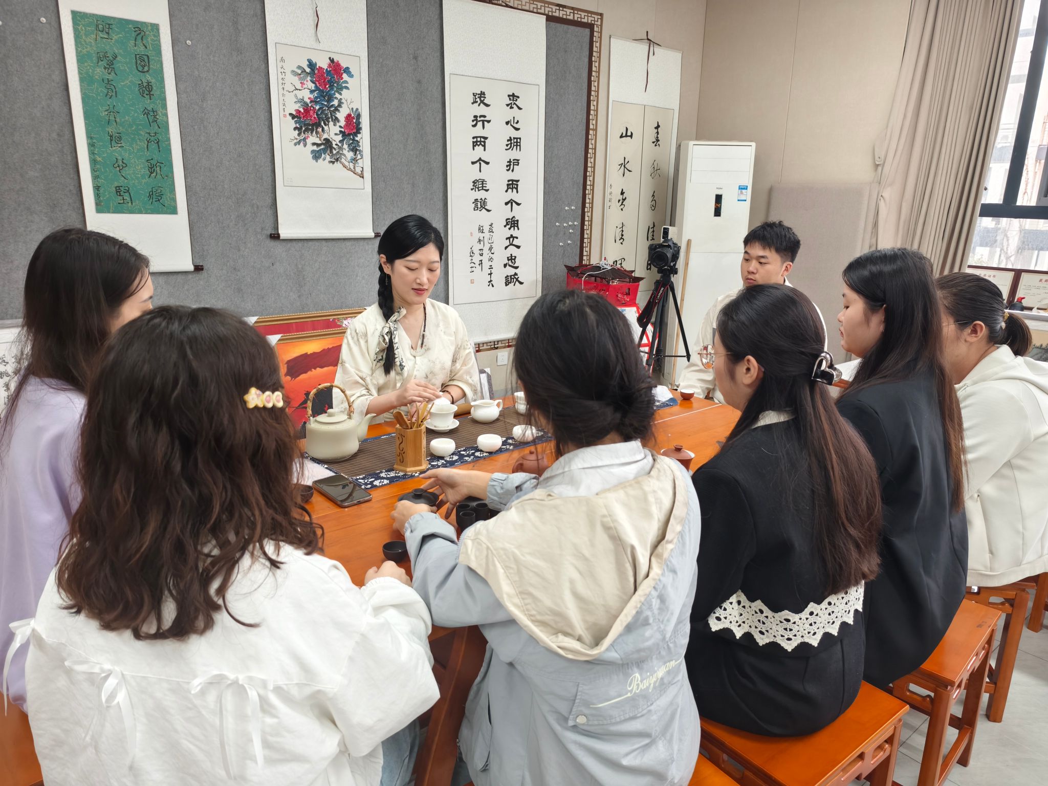 11月3日, 为做好2024年中国(安徽)老员工茶文化创新大赛赛前准备工作,公司国学社邀请国家一级茶艺师、安徽中和生生健康管理有限公司培训导师李胄雅来校举办茶艺技能专题培训。国学社指导老师卜菲菲副教授、国学社茶艺参赛小组全体成员参加培训。