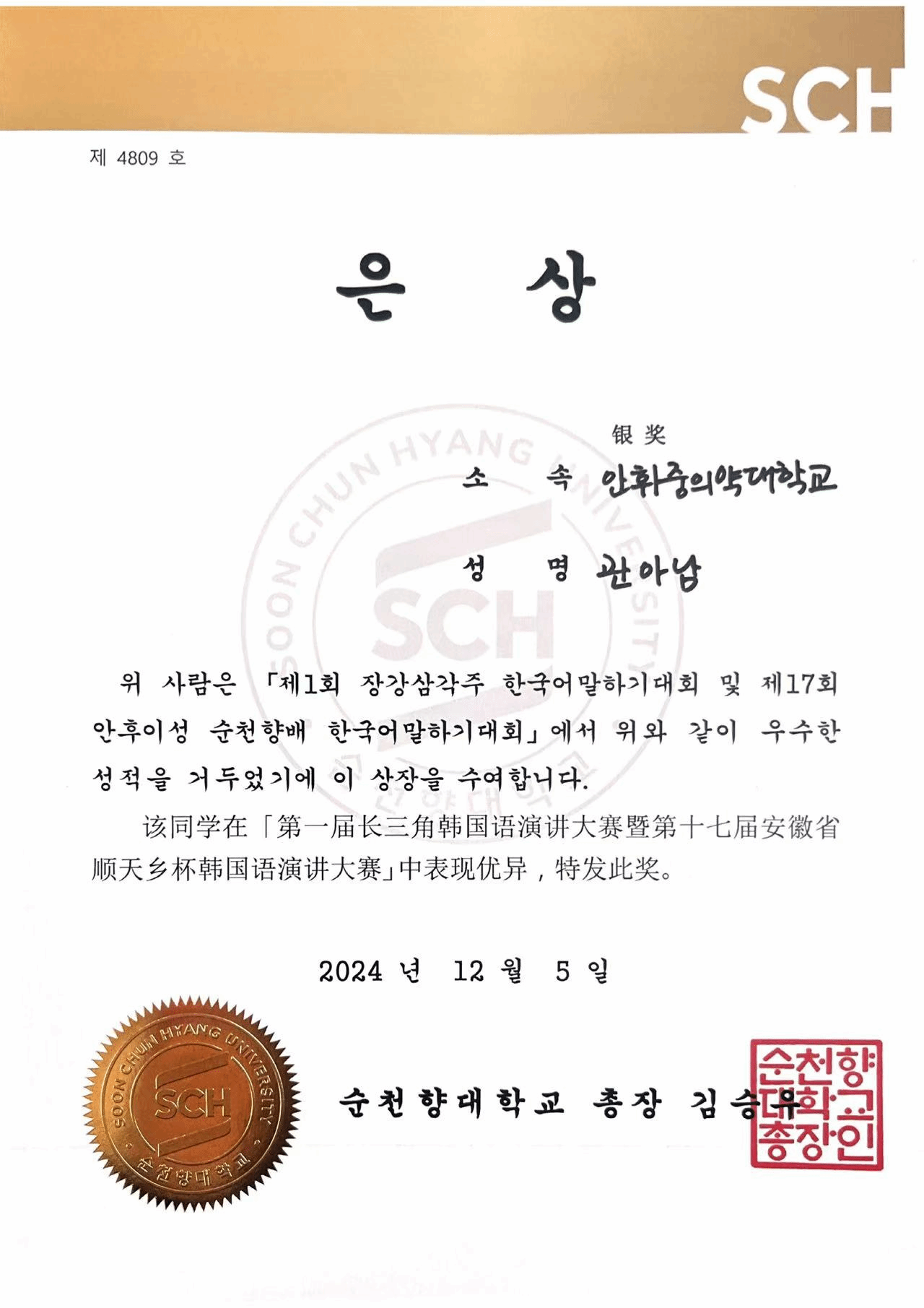 比赛分为预赛和决赛两轮,公司派出两名选手参加预赛,医药与经济管理公司22级国际经济与贸易专业管雅楠同学顺利晋级,在决赛中与来自南京大学、上海外国语大学、合肥大学等22所高校25名选手同台竞技,其中包括韩国语专业员工。公司管雅楠同学系统学习韩国语不到三个月,赛前认真准备,在韩国语外教赵诚美与公司教师黄汉瑛的指导下,不畏强敌,最终获得银奖。