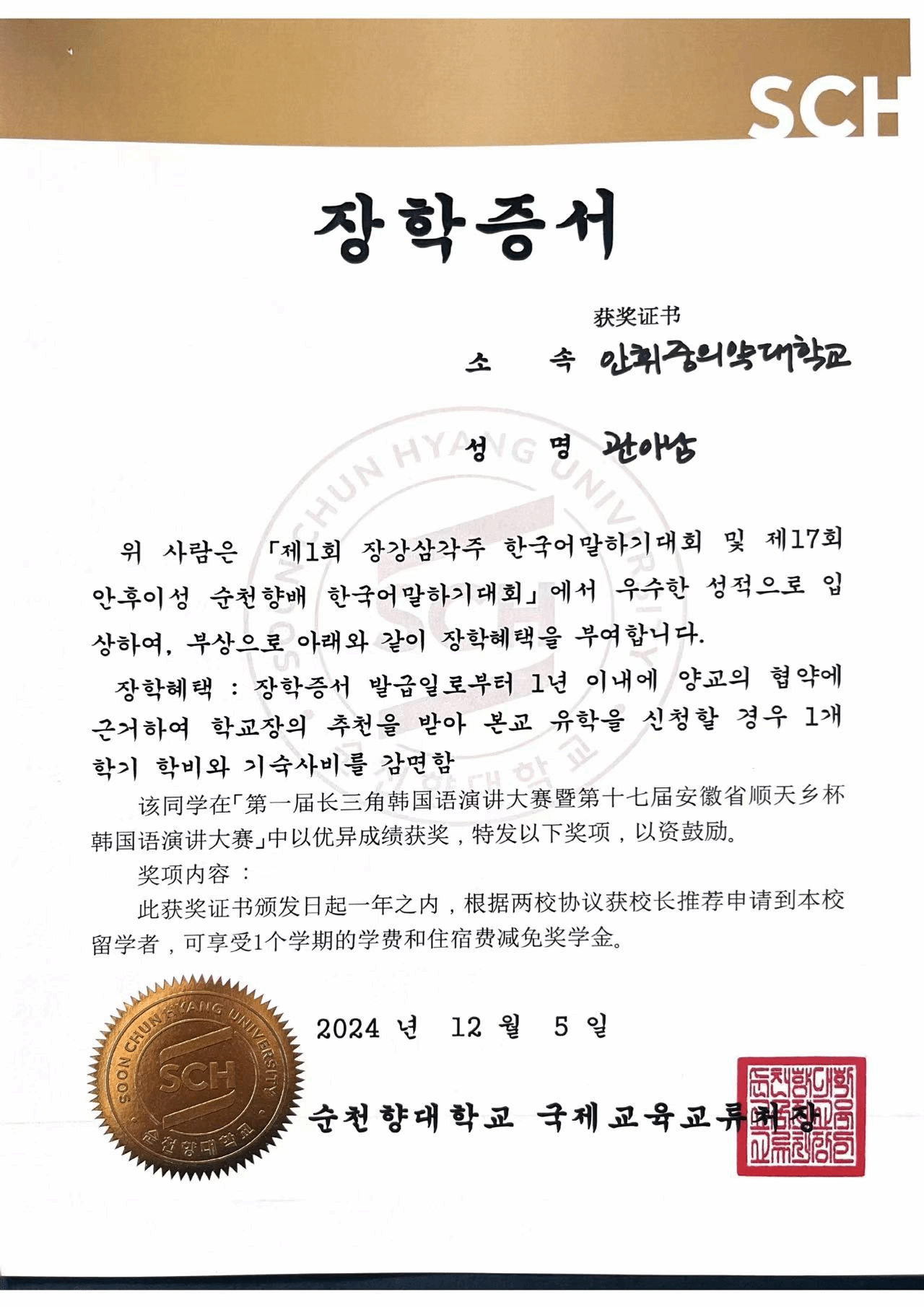 为贯彻落实习近平总书记关于教育的重要论述和全国教育大会精神,促进长三角三省一市教育融合发展,提升长三角地区韩国语人才培养水平,2024年12月5日由安徽省教育厅主办的“第一届长三角韩国语演讲大赛暨第十七届安徽省顺天乡杯韩国语演讲大赛”决赛顺利举行,此次活动由合肥大学和韩国顺天乡大学承办,上海市教育委员会、江苏省教育厅和浙江省教育厅作为指导单位。