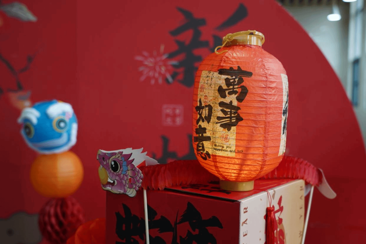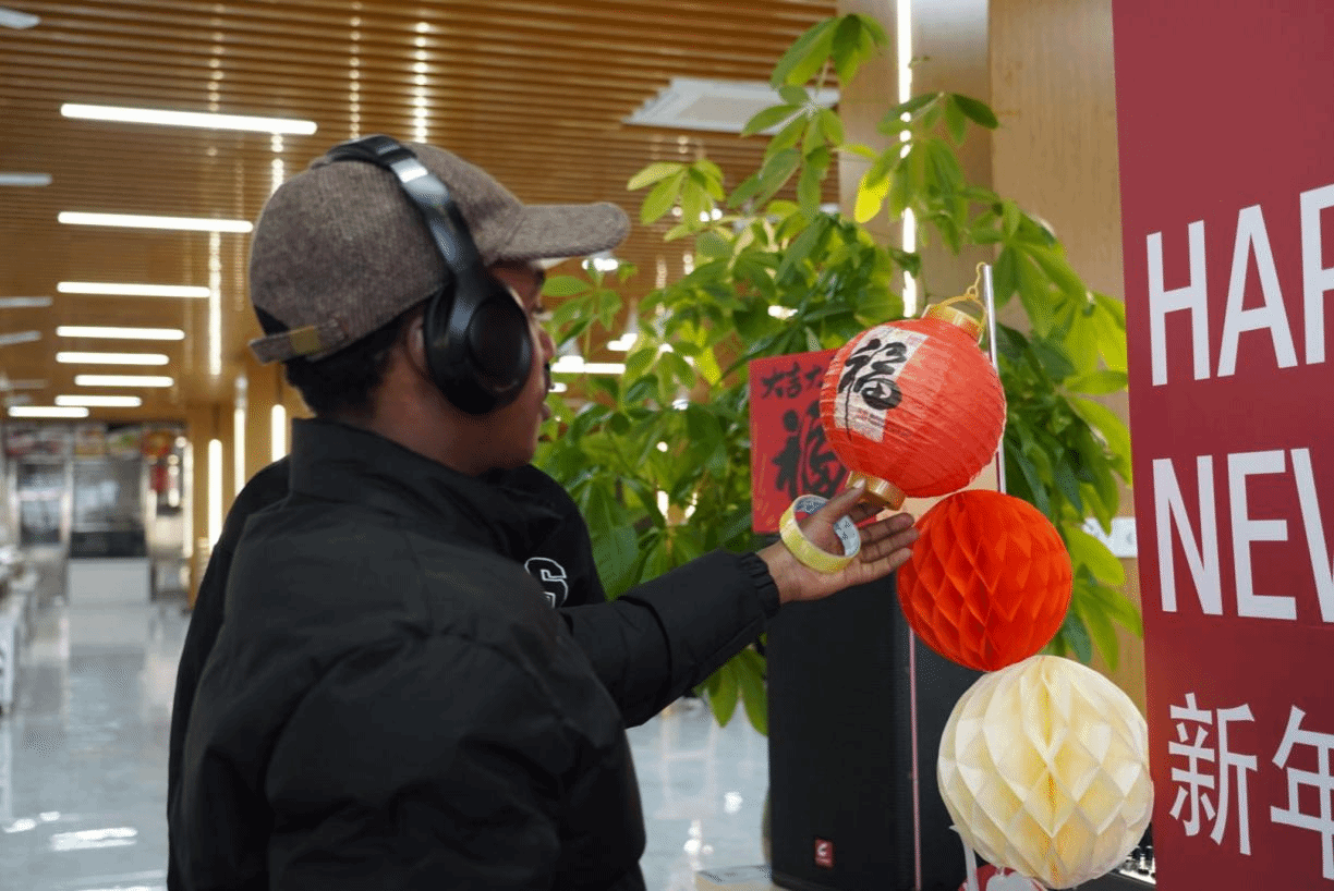 一早,职工同学们自己动手剪窗花、挂灯笼、贴福字,在欢声笑语中感受着中国春节的氛围。
