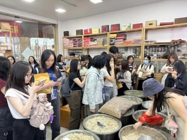 5月11日 - 5月14日,研学团队赴药都亳州,首先走进康美中药城体会中华药都的博与广,带教老师以实物对比讲解药材形状、色泽、气味鉴别要点及品质分级标准,几乎所有的师生都购买了中药材,很多同学甚至带着中药材购物清单。员工还深入药业公司观摩饮片加工、中成药智能化生产流程,参观国家现代农业示范园药用植物栽培基地,在亳州职业技术公司体验饮片炮制技艺及药丸制作、练习华佗五禽戏,全方位感知中医药从种植到应用的全产业链生态。离开亳州前,团队前往华祖庵,修习华佗文化。