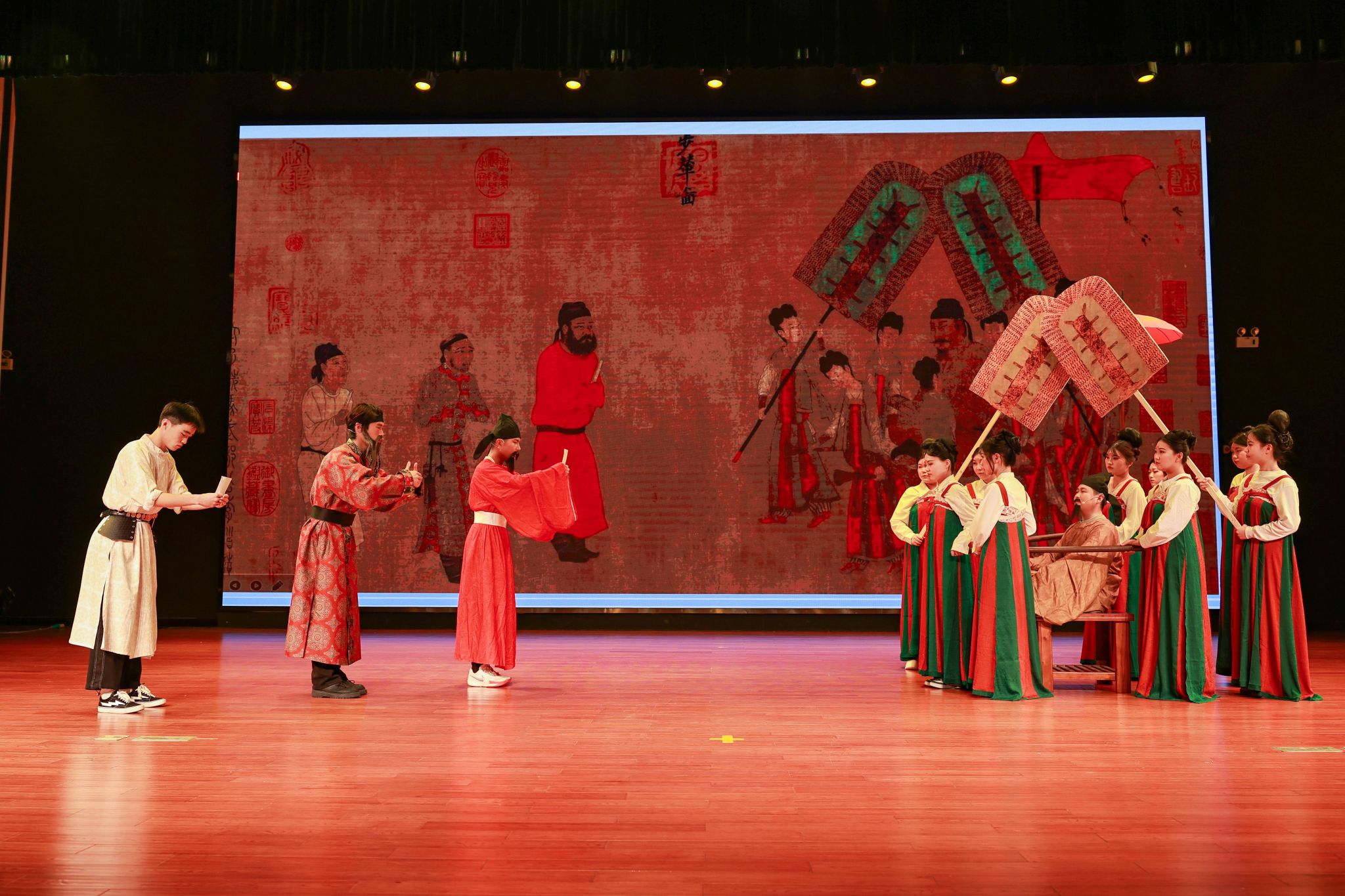 演出由公司教务处、m88、公司产品质量评价与教师发展中心共同主办,美育中心承办。原创话剧《乱世神医》,将“大医精诚”的职业信仰化作舞台镜像;原创歌曲《华佗》与五禽戏、武术棍棒表演,搭建了传统文化与现代艺术的桥梁;原创名画演绎《步辇图》,通过虚实交错的舞台设计,融入了中医药文化的知识;书画走秀《杏林墨韵》铺开了师生建设双一流的画卷。舞蹈《红旗颂》以优秀舞姿诠释革命精神,器乐重奏《战马奔腾》用旋律激荡奋进力量,歌曲串烧《青葱岁月》、朗诵《火把》展现新时代青春学子的精神风貌,还有来自安徽艺术公司的任杰老师倾情献唱一首《为友谊干杯》,将演出推向新的高潮。