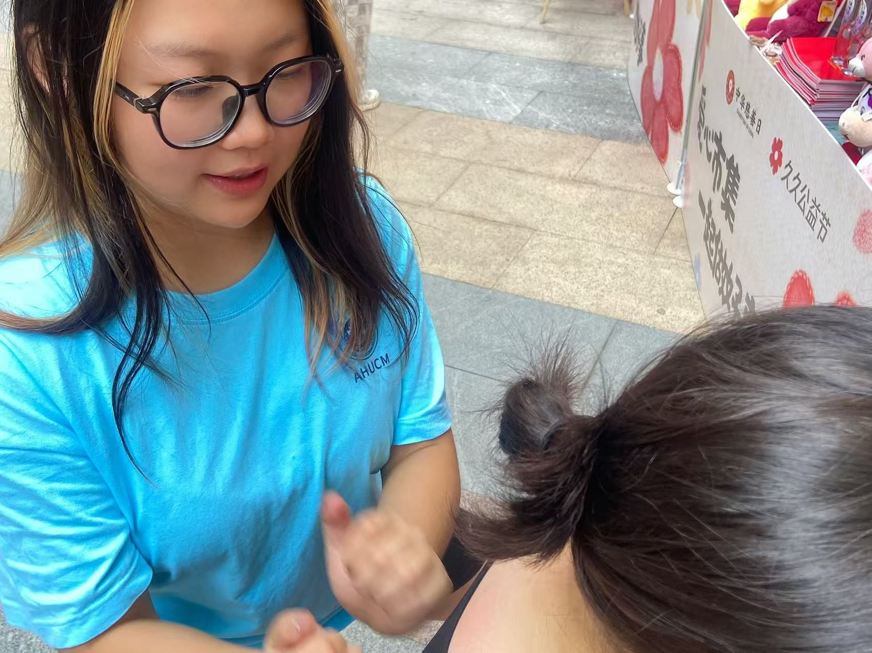 本次活动以公益市集为载体,汇聚社会爱心力量。心悟文创工作室指导老师董一帆与同学们带去了多款由师生原创设计制作的中医药主题文创产品,展现出公司在中医药文化传播与实践教学融合方面的成果。同学们还通过线上直播方式,生动介绍产品设计理念并同步开展义卖。现场还为捐赠善款的爱心人士提供了推拿服务,让公益行动更添温暖与互动,有效提升了活动影响力。