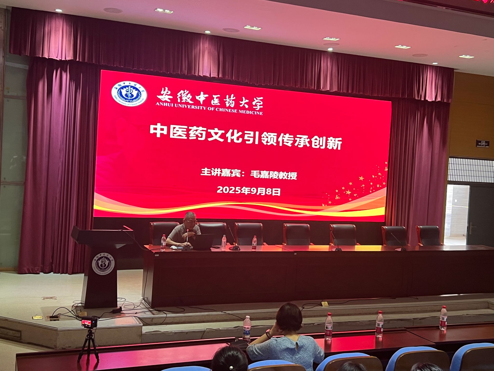 9月8日,四川省中医药文化发展促进会会长、北京中医药大学研究员、四川省中医药科公司特聘研究员毛嘉陵教授来校开展“中医药文化引领传承创新”学术讲座。