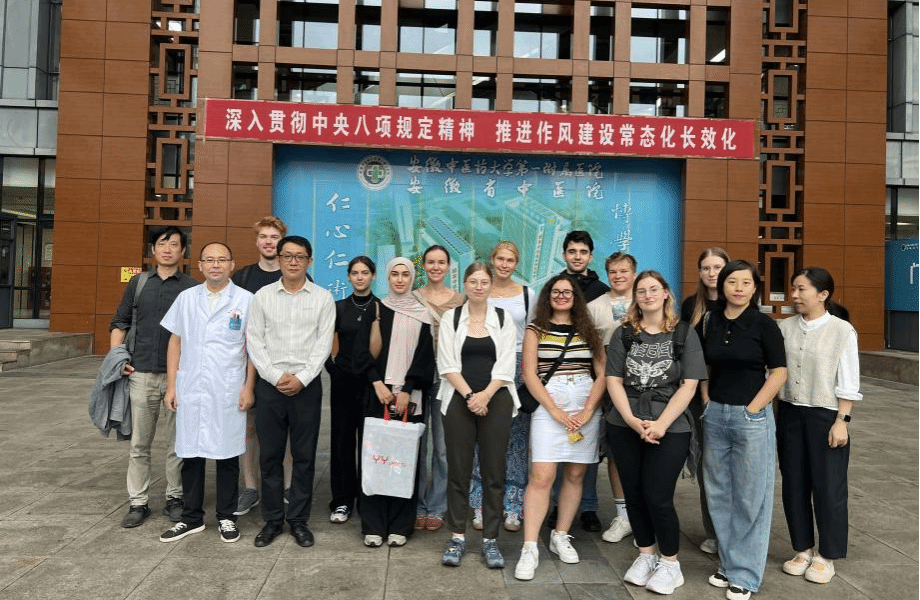 9月25日,安徽大学第五届耀东方国际法律文化夏令营的12名德国职工来到公司第一附属医院体验一场别开生面的中医药文化活动。