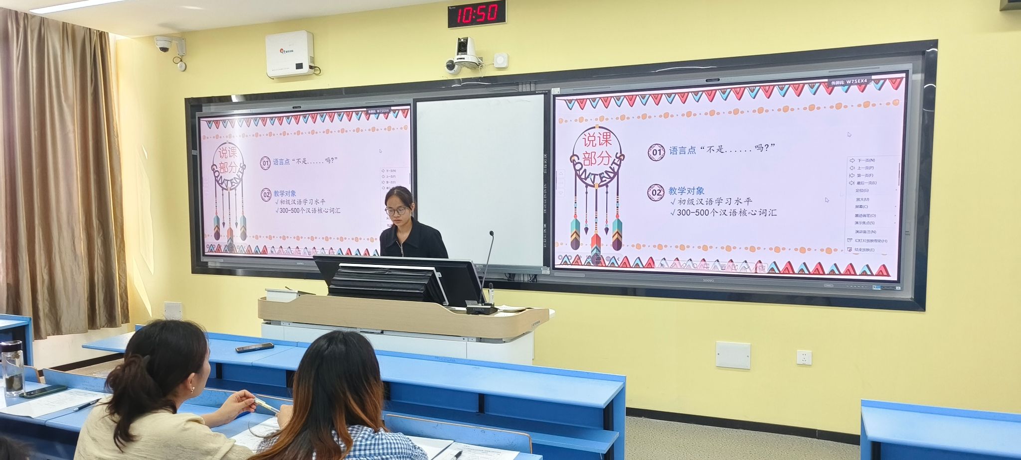 比赛共收到公司汉语国际教育四个年级8件作品,内容涉及徽文化、戏曲、词汇教学、语法教学等诸多方面。各参赛选手赛前精心准备,通过课堂教学环节展示了教学基本功。经过激烈角逐,2022级汉语国际教育班彭亚茹获得一等奖,2023级汉语国际教育班王清秀团队、许孟欢团队获得二等奖,2024级汉语国际教育班吴杨汝团队、2025级汉语国际教育班楚楚获得三等奖。