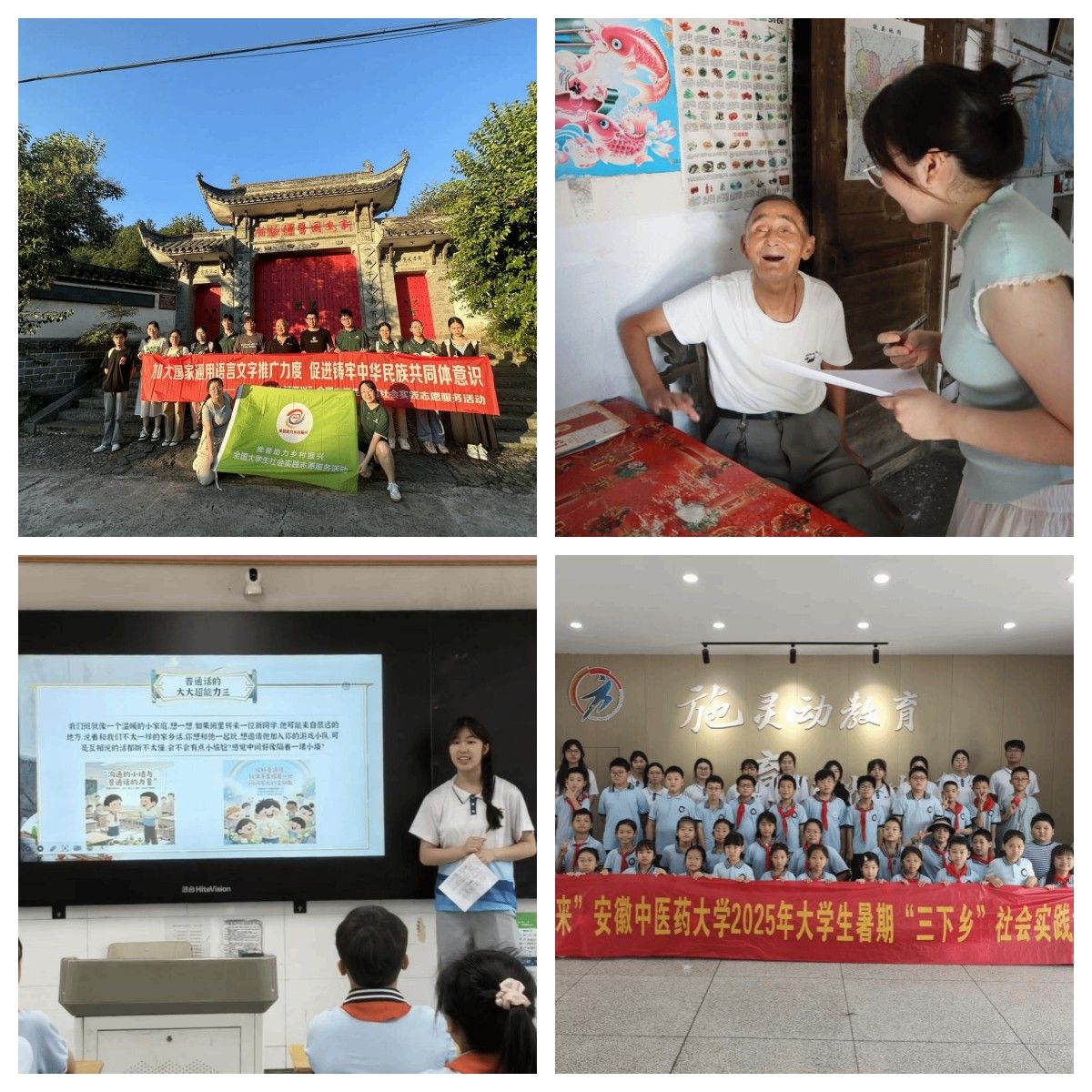 公司充分发挥中医药专业优势,将推普工作与社会服务、乡村振兴紧密结合,组织师生团队深入基层开展推普社会实践活动,使国家通用语言文字成为助力乡村发展的沟通“桥梁”。其中,“徽州言脉·数博拾音团”与“修文正心”乡村振兴促进团成功入选2025年“推普助力乡村振兴”全国老员工暑期社会实践志愿服务活动重点团队及协同团队。师生们将普通话推广与健康知识普及、乡村文化调研相结合,在服务中助力乡村语言能力提升与文化振兴,切实增强了推普工作在服务地方发展中的实效性。