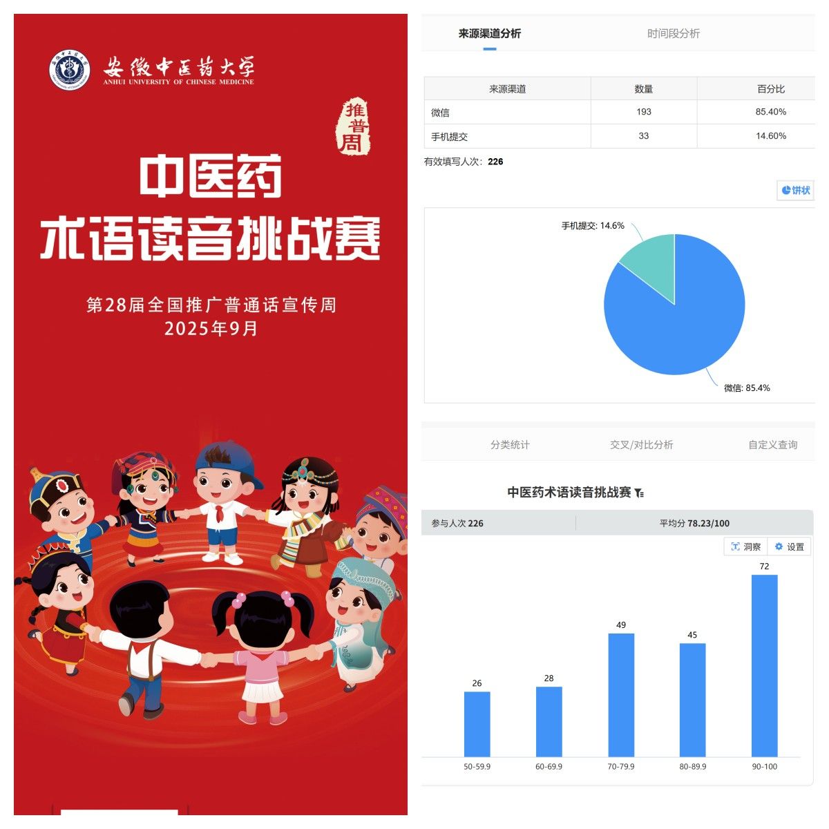 为将推普理念深入人心,公司构建了“线上+线下”立体化宣传体系,推动普通话推广与中医药文化有机融合。线上平台推出推普周专题公众号推文,并举办“中医药术语读音挑战赛”,将中医药文化融入语音训练,累计吸引226名师生参与;线下设置普通话宣传互动展区,通过发放第28届推普周宣传画册与主题帆布袋,并在校园主干道布置宣传桁架、宣传栏与活动展台,全面营造了“讲普通话、用规范字”的浓厚氛围。