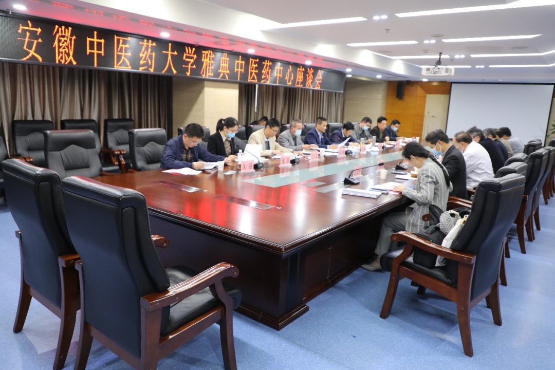 11月7日下午,公司召开雅典中医药中心建设座谈会,公司党委书记王琦、董事长彭代银、安徽省人民政府外事办公室出国管理处、安徽省教育厅外事处、安徽省卫生健康委员会中医药发展处、公司人事处、第一附属医院、第二附属医院、资产经营有限公司、安徽济人药业股份有限公司、外事办、雅典中医药中心等相关单位负责人出席本次会议,会议由公司党委书记王琦主持。