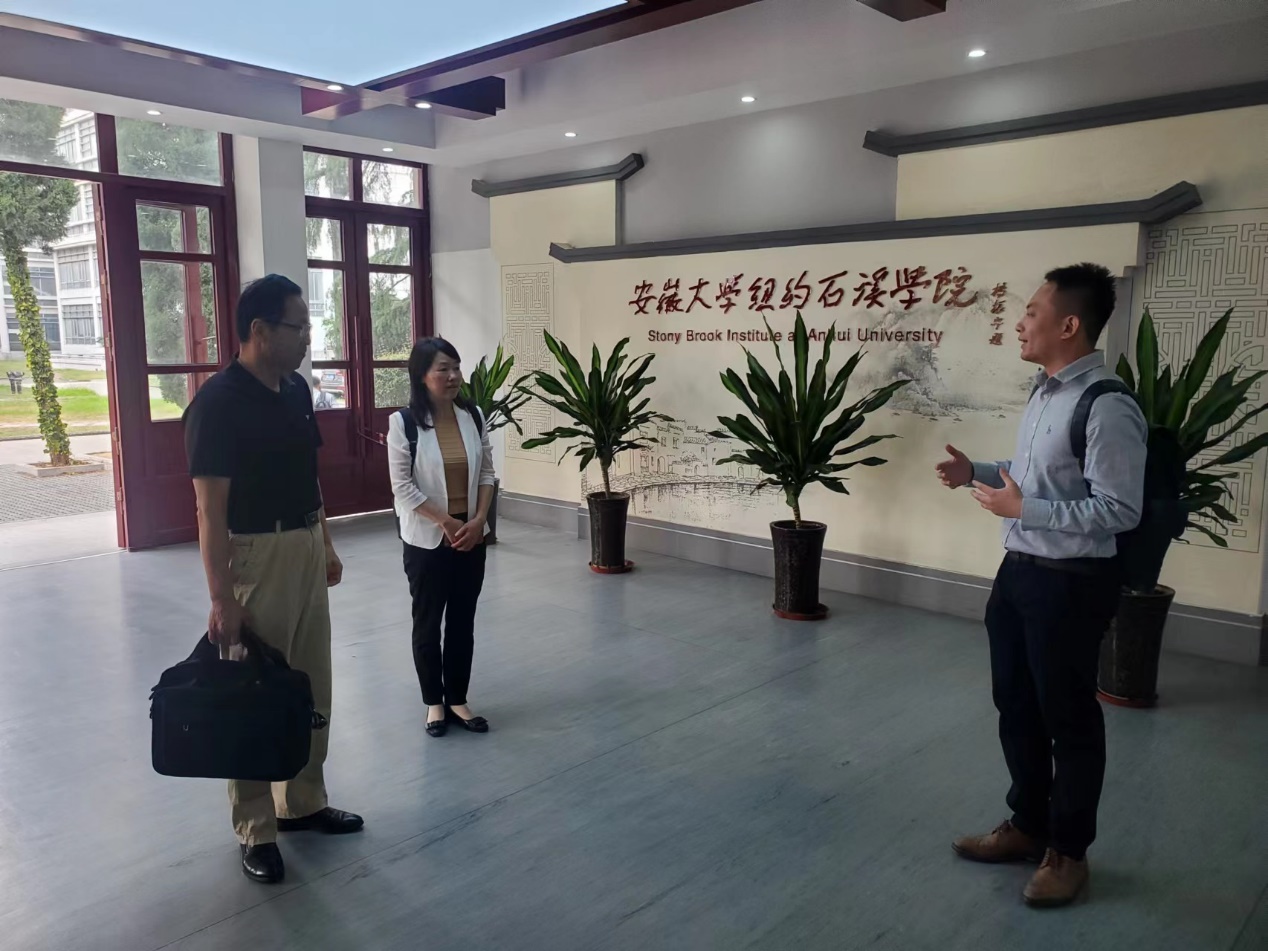 在安徽大学纽约石溪公司联合管理办公室主任陈伟光的陪同下,周亚东经理一行参观了安徽大学纽约石溪公司教学楼,实地考察了先进的教学管理设施。座谈会上,双方就中外合作办学机构的组织架构、管理职责分工、团队储备、课程体系、员工管理、学位授予、品牌建设与市场传播等方面进行了广泛的沟通和交流。周经理表示,深入了解兄弟院校关于中外合作办学的做法和经验,对公司推进中外合作办学项目申报,提升公司国际化办学水平有重要意义。桂经理表示,中外院校可以依托双方强势学科在员工培养、教师互访、科研项目等方面开展多元合作。