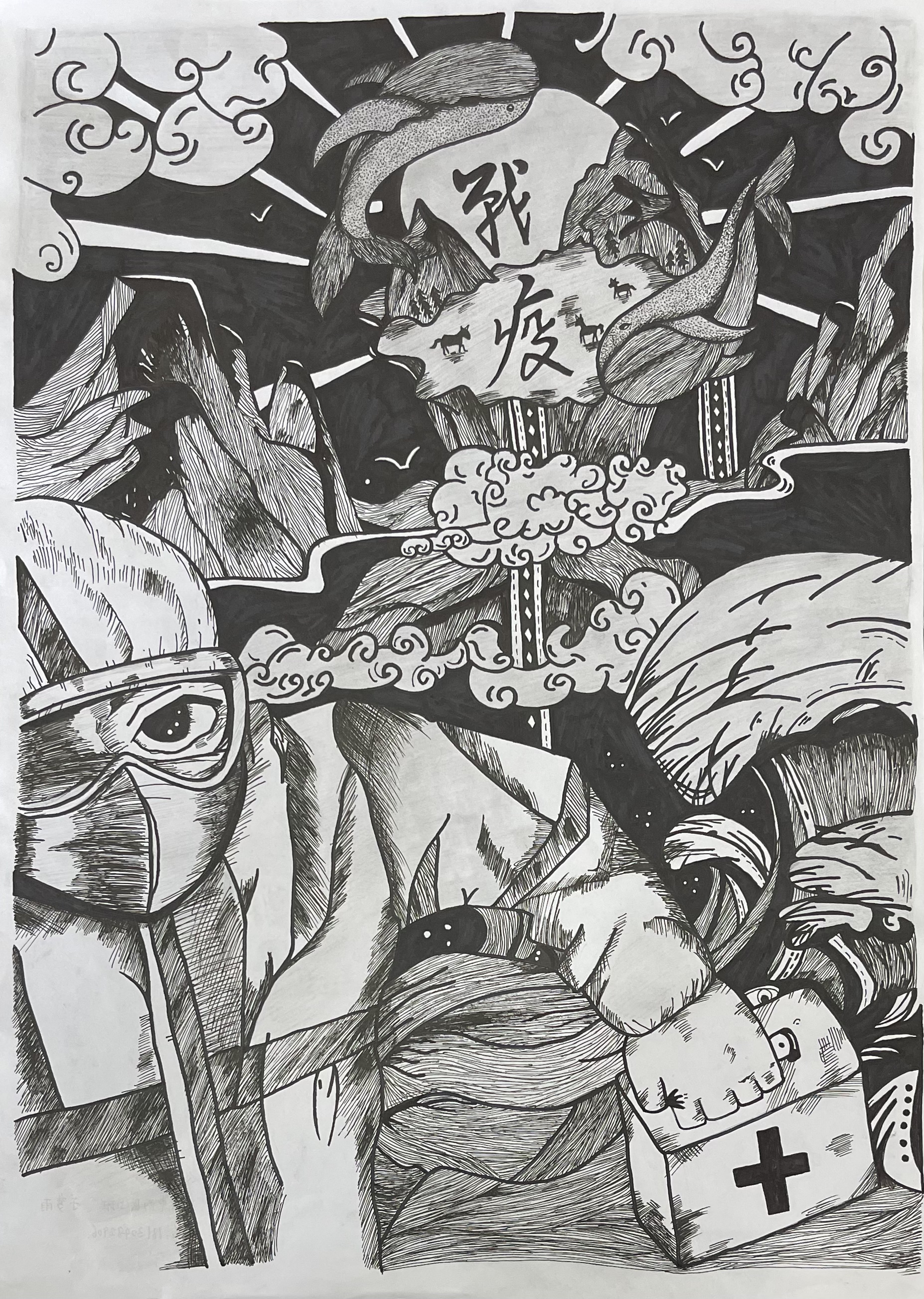 刘通 20中西医七班 《万众一心,疫情退散》
