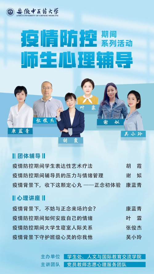 自新一轮疫情发生以来,公司党总支高度重视疫情防控工作,根据公司疫情防控工作总体要求,发挥学科专业优势,成立公司“党员教师志愿心理服务团队”,胡霞、张俊杰、谢姒、叶霖、吴小玲、康蓝青等拥有心理学背景的党员教师主动报名加入疫情防控志愿服务队伍,为公司疫情防控工作提供专项心理辅导,帮师生消除恐慌心理。截至目前,公司“党员教师志愿心理服务团队”已开展5场志愿服务,8000余名师生线上线下参加心理辅导系列活动。