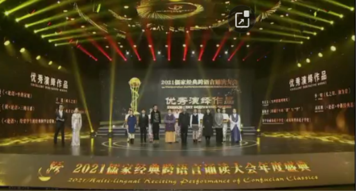 12月24日,由中国孔子基金会、尼山世界儒学中心、山东省教育厅主办的“2021儒家经典跨语言诵读大会年度盛典”在山东济南成功举办。m88王华老师指导员工创作的跨语言诵读作品《不义而富且贵,于我如浮云——孔子义利观与儒医医德》荣获“优秀演绎作品奖”。参加此次诵读活动的作品共3200余件,分别来自中国、俄罗斯、美国、英国、法国、瑞士、日本、韩国、马来西亚、泰国、越南、老挝等47个国家,以及中国香港和澳门地区。作品品鉴结果分为:合格、良好、优良、优秀等次。根据专家品鉴和网络点赞,获得“优秀演绎作品奖”殊荣的仅选取10件作品;该作品的网络点赞数也获得“网络人气作品”称号。近20家媒体平台对此次盛典进行了全程直播,420余万人次在线观看。