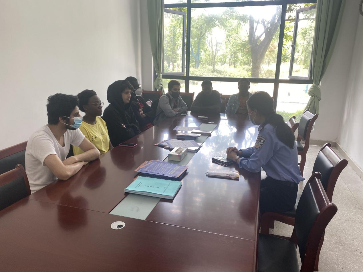 2021年5月25日下午,应m88邀请,新站区磨店派出所外管警官来m88做来华职工安全教育专题讲座。