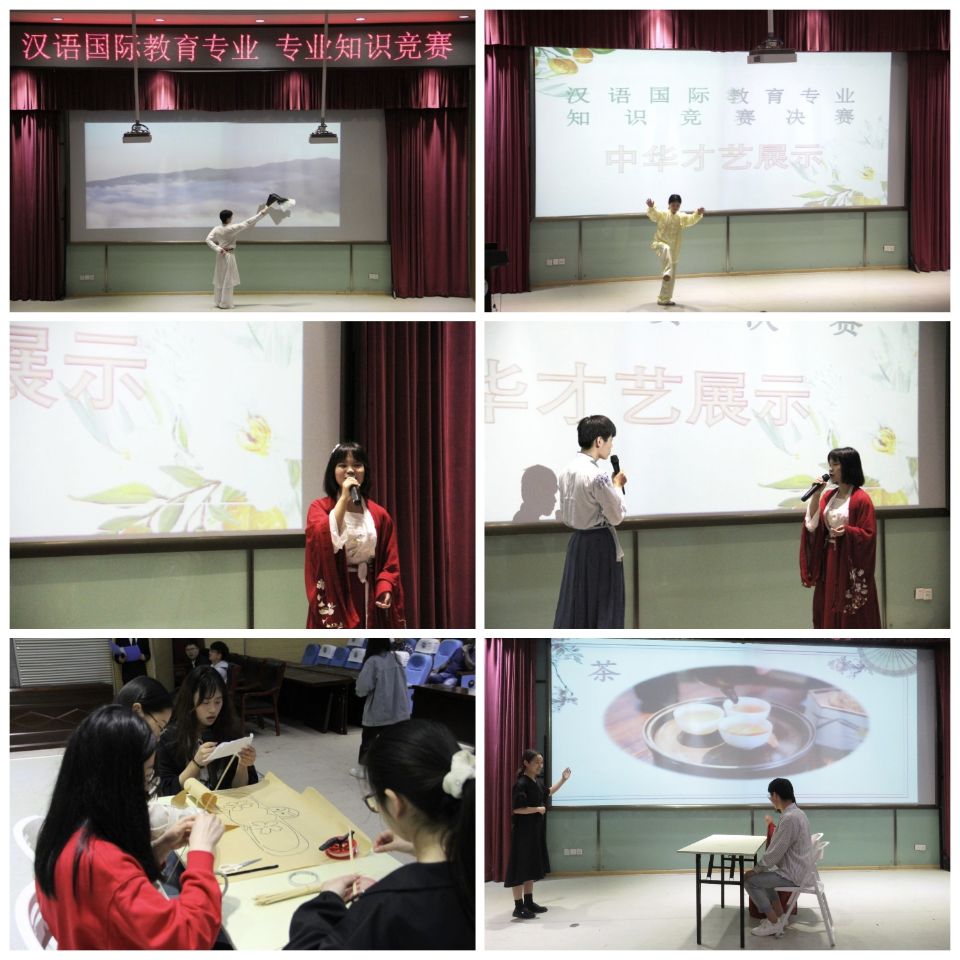 来自三个年级的四支代表队过关斩将闯入决赛,他们团结合作,相互配合,在团队必答题环节稳步得分;他们学以致用,临场应变,在抢答题环节积极抢分,他们深思熟虑,积极应对,在风险题环节再创高分。怀唱一曲《庐州月》,跳动一支扇子舞,踢打一套五禽戏,手作一袭风纸鸢,各队选手在中华才艺展示环节轮番献上精彩演出,各具风韵,各领风骚,赢得现场观众阵阵掌声。在模拟实训教学环节,各队选手精心准备,心讲解,为在场汉教学子树立了教学典范。评委老师们针对教学中的不足与问题给出中肯的建议,赛后教务处副处长沈安鲁对比赛给予了高度评价,认为整场比赛组织安排合理,内容丰富多彩,员工参与度广,师生积极性高。