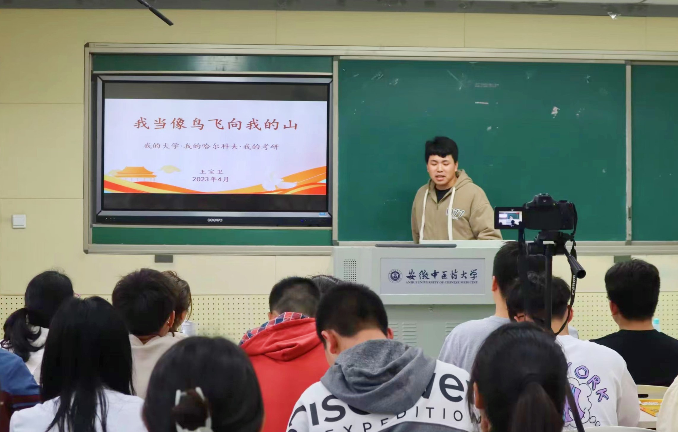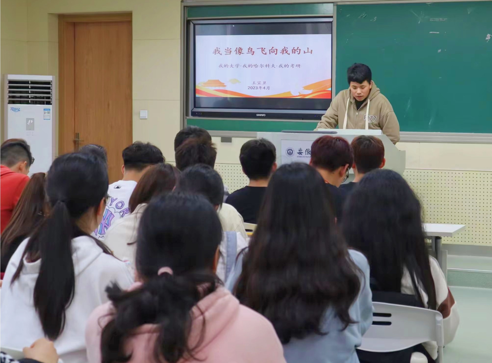 为帮助大家明确自身定位,确定专业相关规划,m88邀请2015级优秀毕业生王宝卫同学为汉语国际教育专业的同学开展主题为“我当像鸟飞往我的山”的讲座。讲座于2023年4月11日下午在人文院376汉语国际教育实训中心举行,由周政老师主持,22级全体汉语国际教育员工参会,21级部分汉语国际教育员工参会。