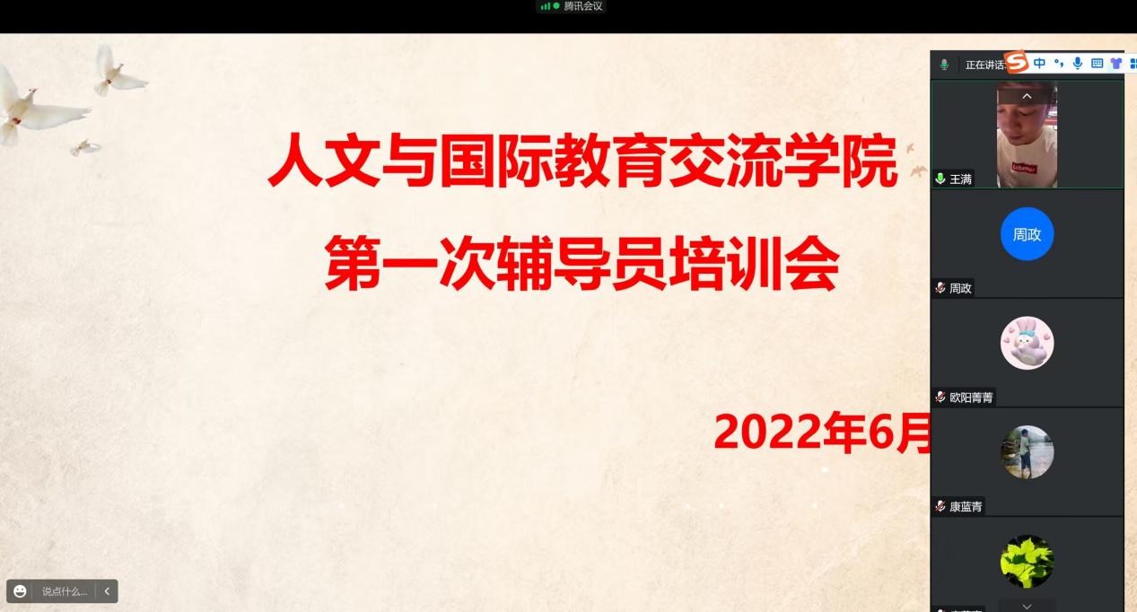 2022年6月17日晚上七点,心理咨询中心举行辅导员心理健康服务工作交流培训会,心理咨询中心康蓝青老师和人文公司全体辅导员参加了本次培训会。
