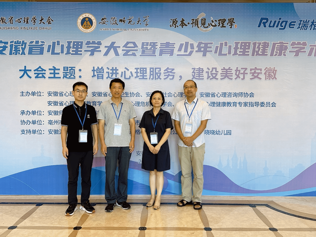8月12-13日,第一届安徽省心理学大会暨青少年心理健康学术论坛在芜湖召开,大会由安徽省心理学会、安徽省心理卫生协会、安徽省社会心理学会、安徽省心理咨询师协会、安徽省心理健康教育学会、安徽省心理危机干预学会、安徽省员工心理健康教育专家指导委员会联合主办。公司党总支书记金晓琴、心理学系教师王平、张俊杰、许胜参加本次大会。