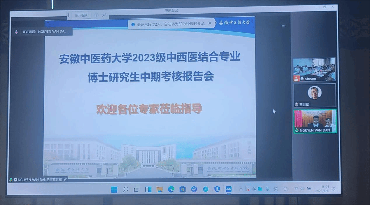 8月11日下午,m88官网2023届职工博士论文中期报告在新安楼5楼会议室顺利举行。山东中医药大学王世军教授,m88官网王茎教授、周亚东教授、江爱娟教授及王海涛教授参加报告会。