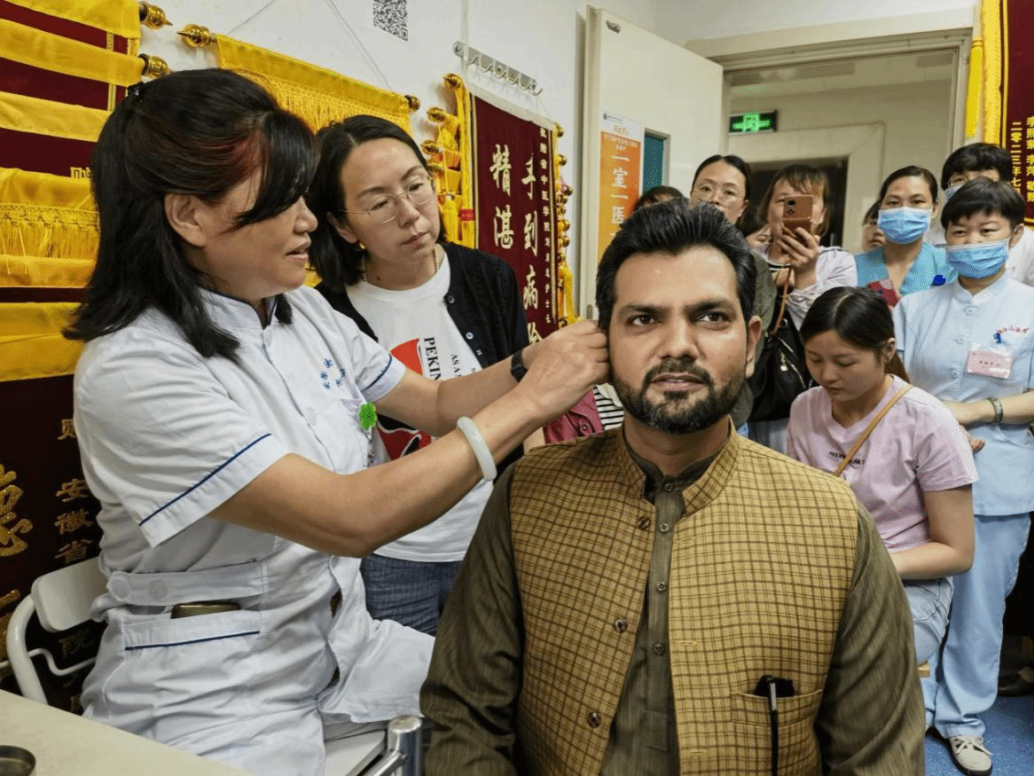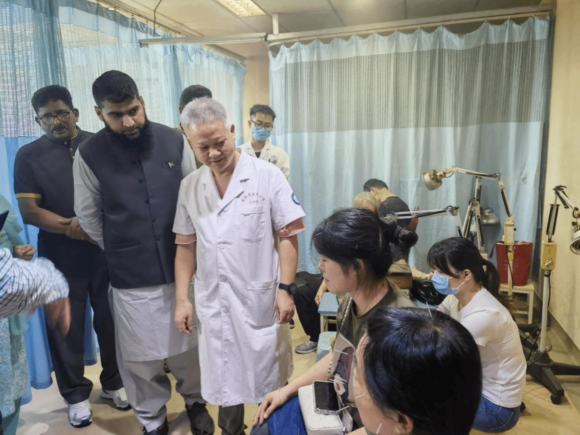 8月29日,IUB大学代表团参访了公司第一、第二附属医院。在第一附属医院,参观了中草药房,中医特色护理门诊以及内分泌科病区,体验了耳穴埋豆等中医特色治疗项目;在第二附属医院,参观了医院门诊针灸名医的诊室,观摩了火针、小针刀等中医特色诊疗方法,在医院文化长廊听取了院史和中医药、针灸发展史的介绍,在康复治疗中心亲身体验了推拿、针灸治疗。莫阿扎姆·贾米尔一行被中医药文化的魅力所深深吸引,对中医药特色治疗表示了由衷的钦佩和赞叹,并希望有更广阔的合作空间和更紧密的联系。