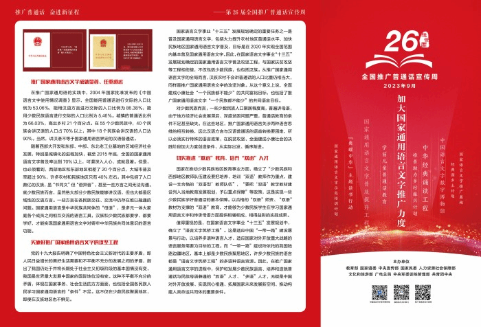 国家通用语言文字推广普及是语言文字工作的首要任务。第26届推普周宣传系列活动旨在提高老员工语言文字应用能力、加强公司语言文字规范化和校园文化环境建设。公司将不断提高普及程度,提升普及质量,结合自身的中医药资源和优势,充分发挥高校在服务国家通用语言文字高质量推广普及中的作用。