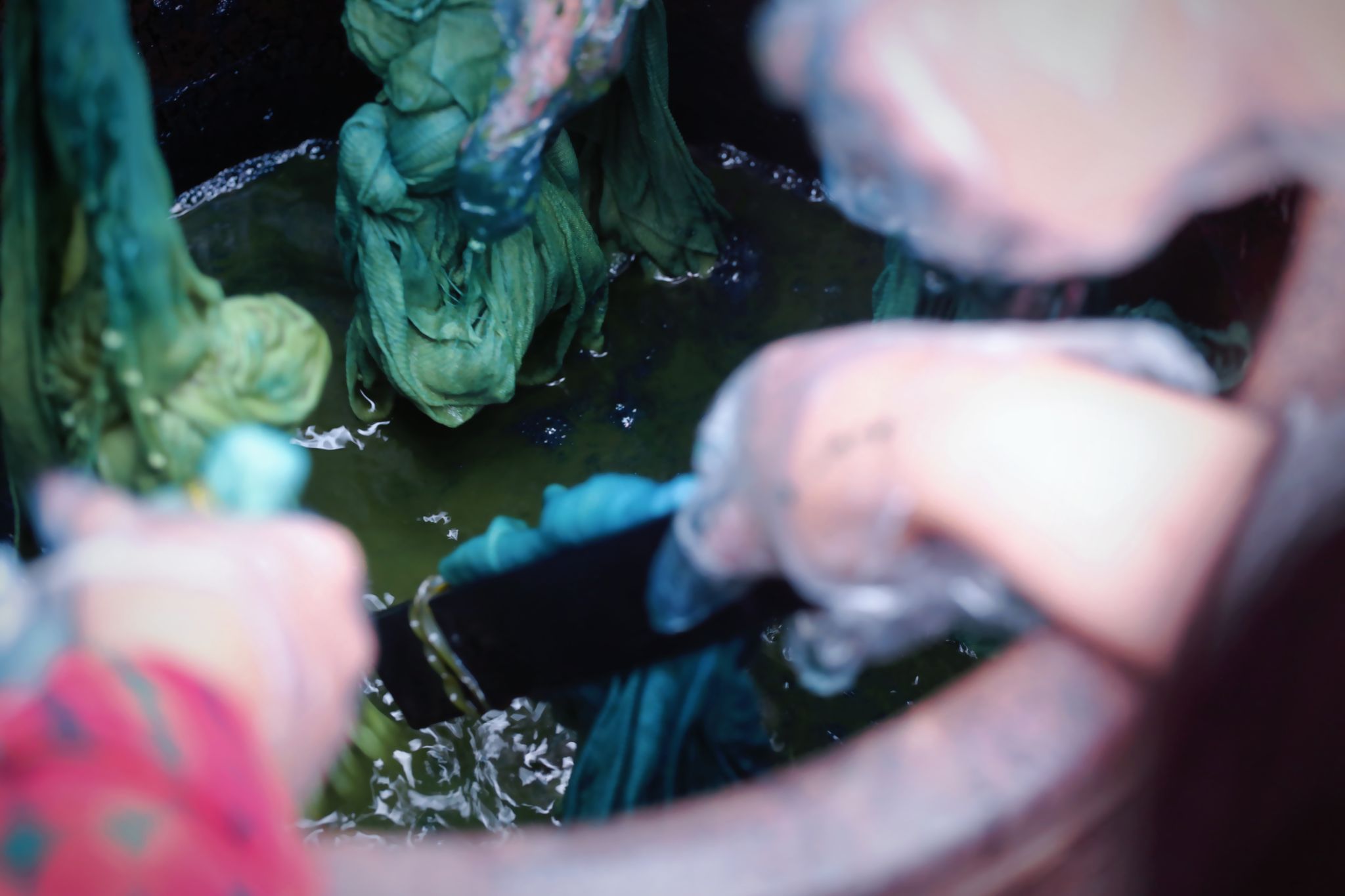 “同学们可以通过捆绑、折叠、扎束、染色等方法和不同的工具制作不同的花色效果,每一个蓝染作品都是独特的!”活动中,公司邀请的资深专家为同学们提供专业的指导和教学。专家向同学们介绍了蓝染的历史渊源以及传统的染色技巧,并现场演示了几种常见的扎染方法。在他的悉心指导下,同学们积极参与,并很快掌握了扎染的基本技巧,他们自由地创作并设计自己的扎染图案,用夹子、石头、橡皮筋等工具将布料一点点地扎紧,再将其浸入染料中。通过不同的扎紧方式和染色方法,创作出了各具特色的扎染作品。