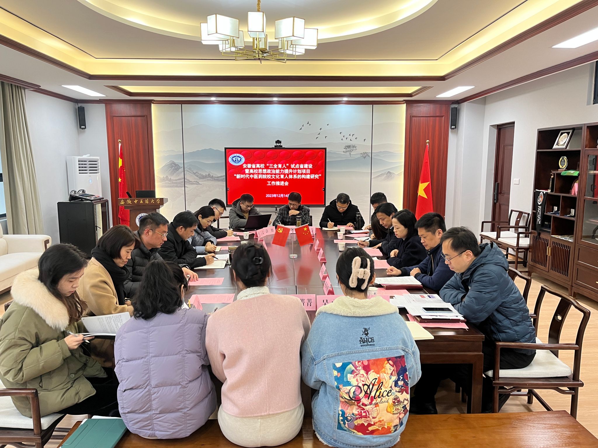 姚为久在总结讲话中指出,与会人员紧紧围绕安徽省高校“三全育人”试点省建设暨高校思想政治能力提升计划项目《新时代中医药院校文化育人体系的构建研究》进行讨论,下一步项目要坚持以习近平文化思想为指导,更好担负起新时代新的文化使命,构建文化育人新路径,从课程路径、科研路径、活动路径、实践路径、环境路径、平台路径、网络路径、品牌路径等方面打造文化育人特色项目,将中医药文化有效融入思想政治工作,形成独具特色的中医药文化育人工作模式。